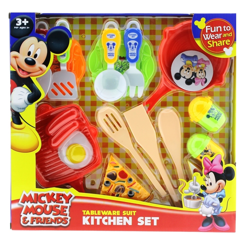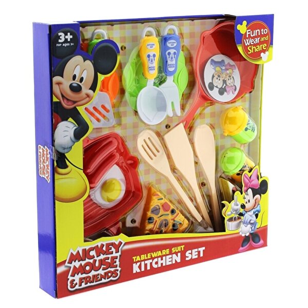 2 adet tabak, kaşık, çatal, bıçak, spatula, omlet tavası, gril tava, 2 adet baharatlık, sahanda yumurta, 2'li sosis, pizza dilimi, pasta dilimi, 3 farklı pişirme kaşığı.