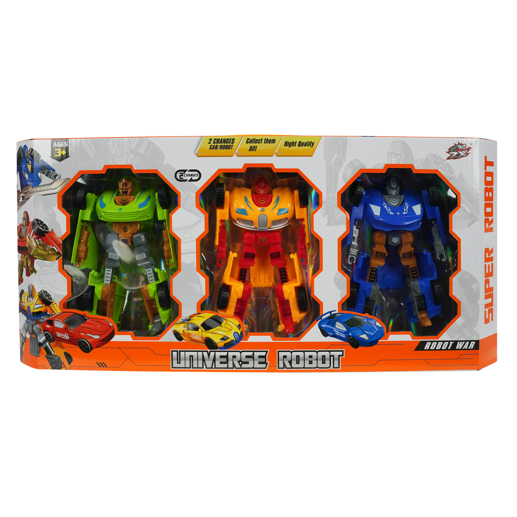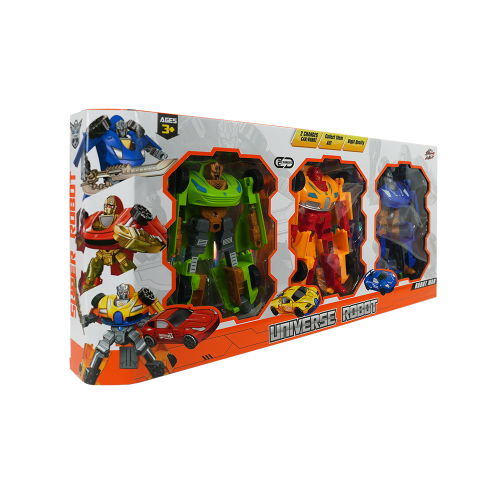 Bu set, 3 farklı robot figürünü içerir ve her biri kolayca araca veya başka figürlere dönüşebilir.