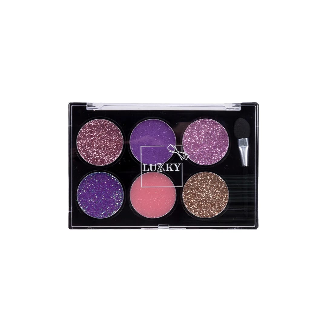 6 Renkli Parıltılı Göz Farı Paleti + Fırça ile göz makyajını güçlendir, ışıltı kat ve partilere hazır ol.