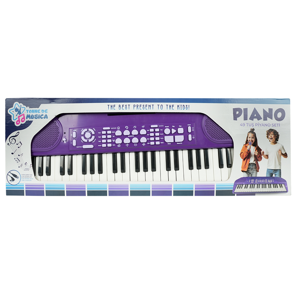 Çocukların müzikle tanışmasını eğlenceli hale getiren 49 tuşlu elektronik çocuk piyanosu, hem eğitici hem de keyifli bir oyun deneyimi sunar.