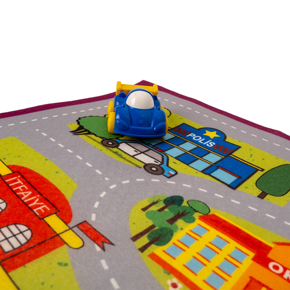 Birbirinden neşeli renklere sahip bu araçları çocuğunuz ister tek başına isterse diğer arkadaşları ile oynayabilir. Oyun halısı ile gelir.