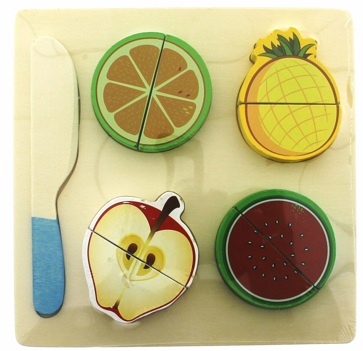 4 farklı meyve ve bir bıçaktan oluşur.