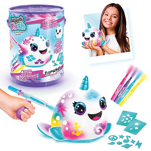 Çocuklar, sette sunulan şablonları ve ayrıca dahil olan airbrushı kullanarak kişiselleştirebilecekleri sürpriz squish peluş bir hayvan bulacaklar.
