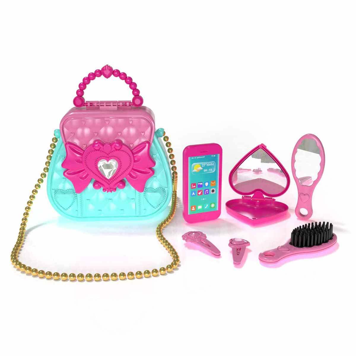 adet kapaklı güzellik aynası, 1 adet oyuncak cep telefonu ve 2 adet toka