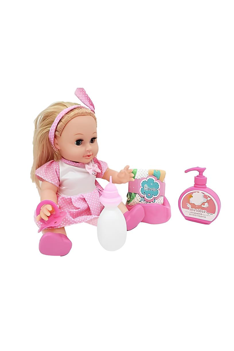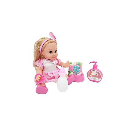 Altını ıslatan roza bebek ile birlikte 1 adet biberon, 1