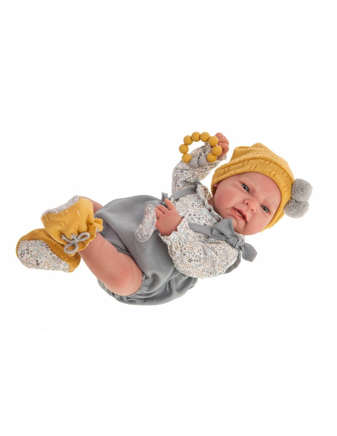 40 cm uzunluğundaki bu güzel bebeğin başı ve elleri yumuşak vinilden yapılmadır ve harika bir dokunuş hissi yaratır.