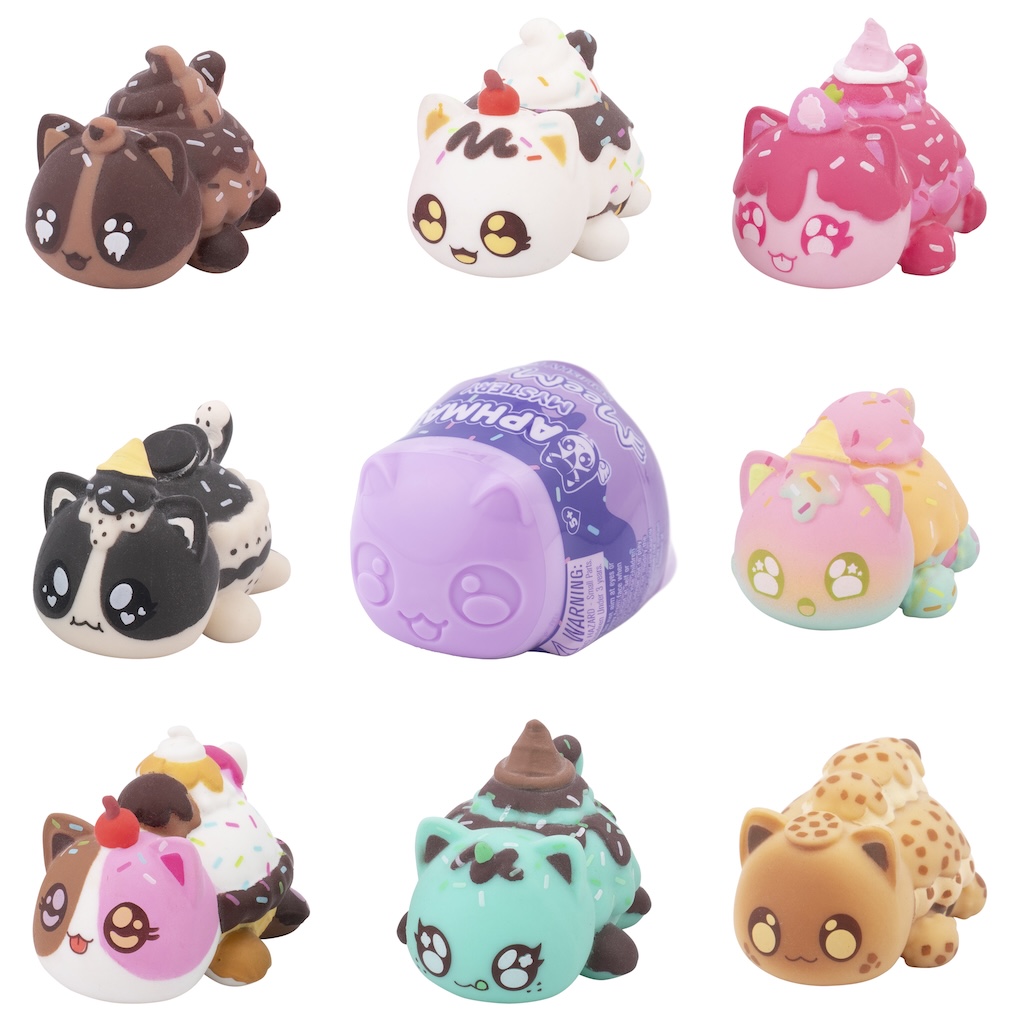 Aphmau kedileri şeklindeki kutularda gelen figürler Chocolate Ice Cream Cat, Vanilla Ice Cream Cat, Strawberry Ic Cat, Mint Chip Ice Cream Cat, Neopolitan Ice Cream Cat, Cookie Dough Cat, Cookies & Cream Cat, Sherbet Ice Cream Cat olmak üzere 8 asortiden oluşuyor.