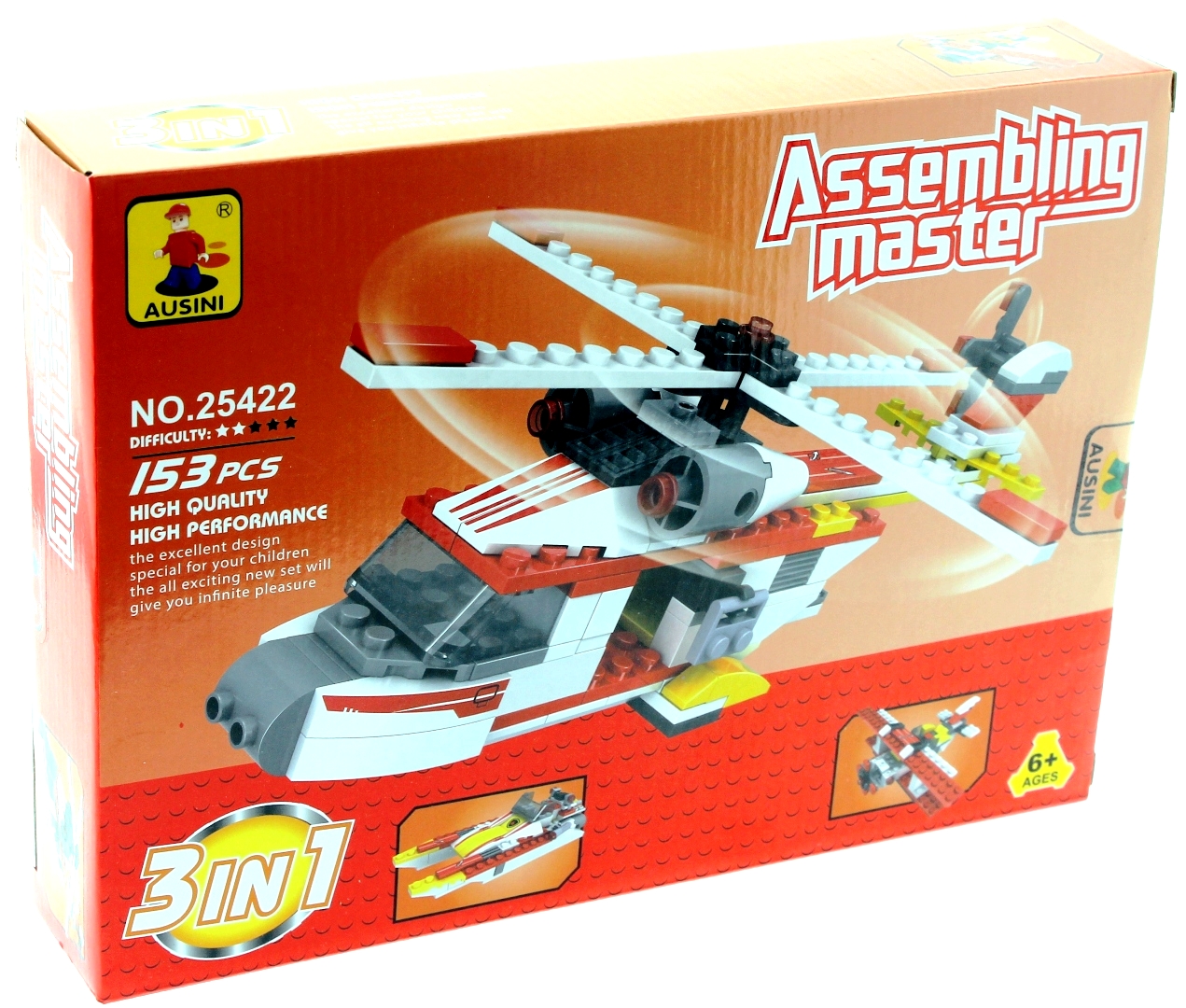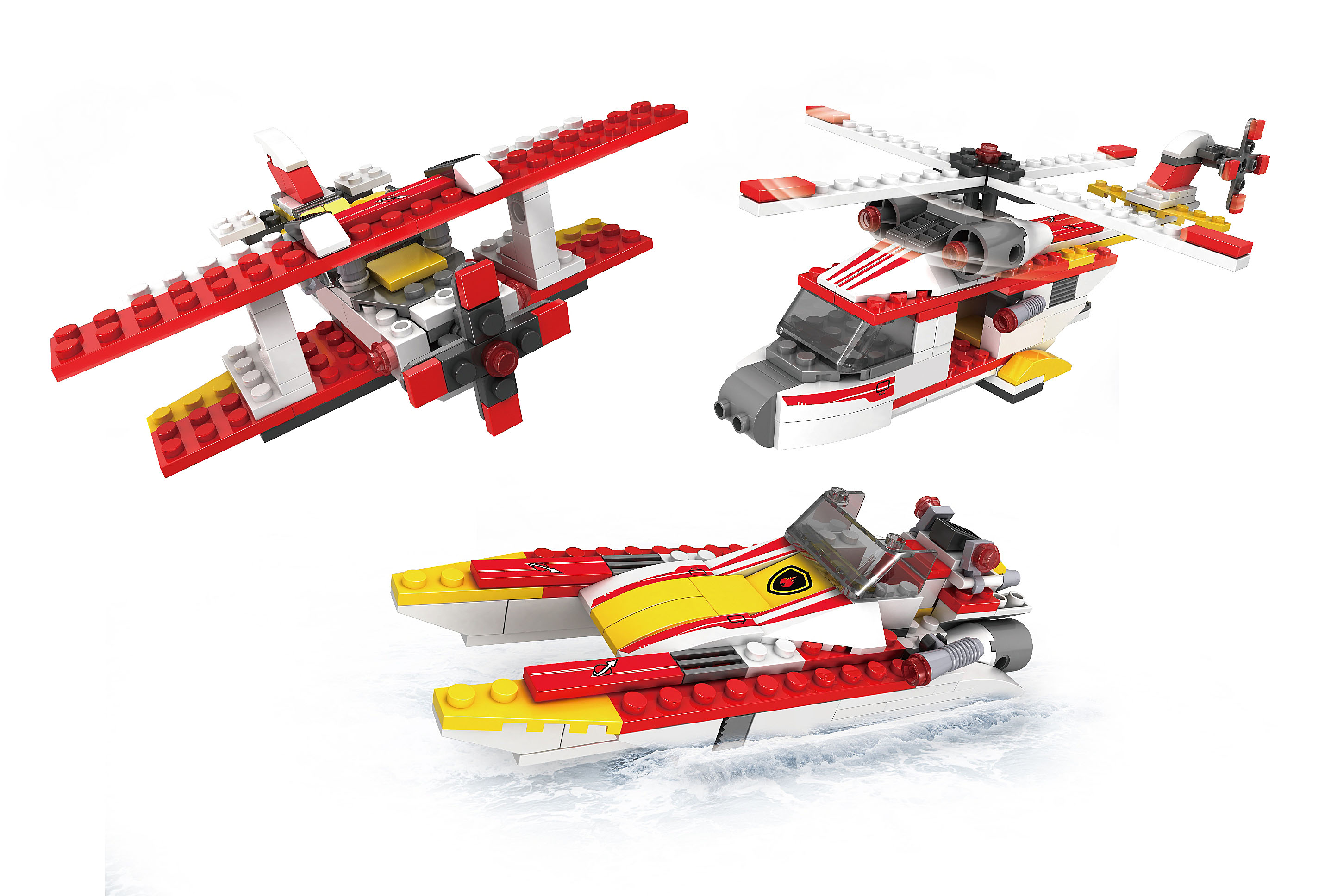 Ausini City Seti ile hayal gücünün sınırlarını zorla, pervaneli uçak, helikopter ve bot olmak üzere 3 farklı aracı yap ve hemen oynamaya başla!