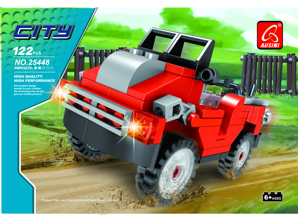Ausini City Set 25448 arazi aracı konseptli tasarımıyla eğlenceli bir oyun deneyimi sunar.
