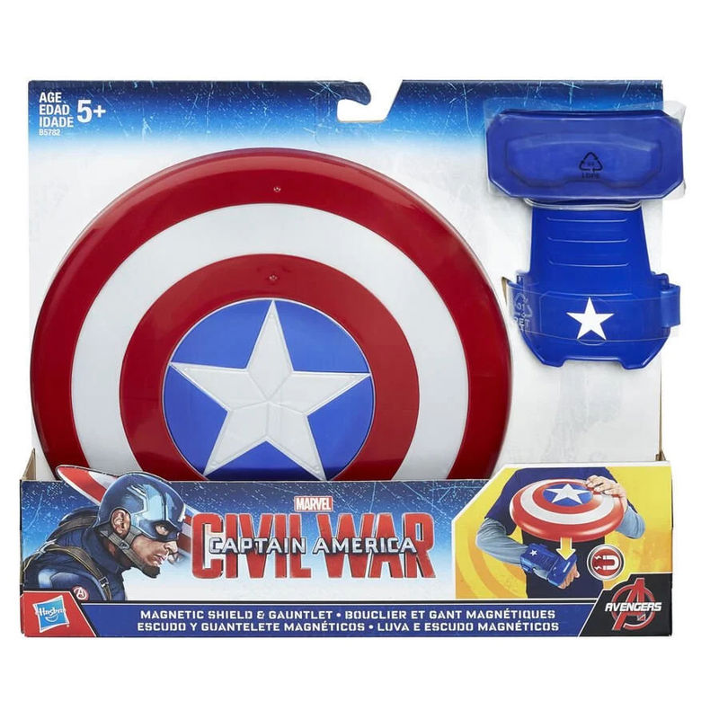 Kalkan, Kaptan'ın kalkanı gibi manyetik bilek eldivenine takılır ve tıpkı Kaptan'ın savaşta kalkanını fırlatması gibi, çıkarıldığında bir disk gibi fırlatılabilir! Kaptan Amerika Manyetik Kalkanı ve Eldiveni ile kahraman adayları, Avengers'ın en vatansever Süper Kahramanı olarak adalet mücadelesine katılmanın nasıl bir şey olduğunu hayal edebilir.