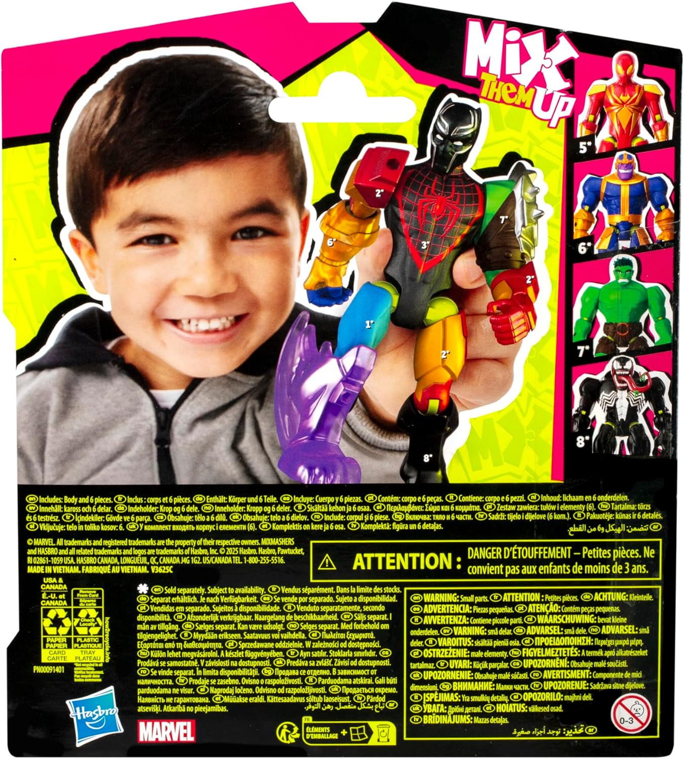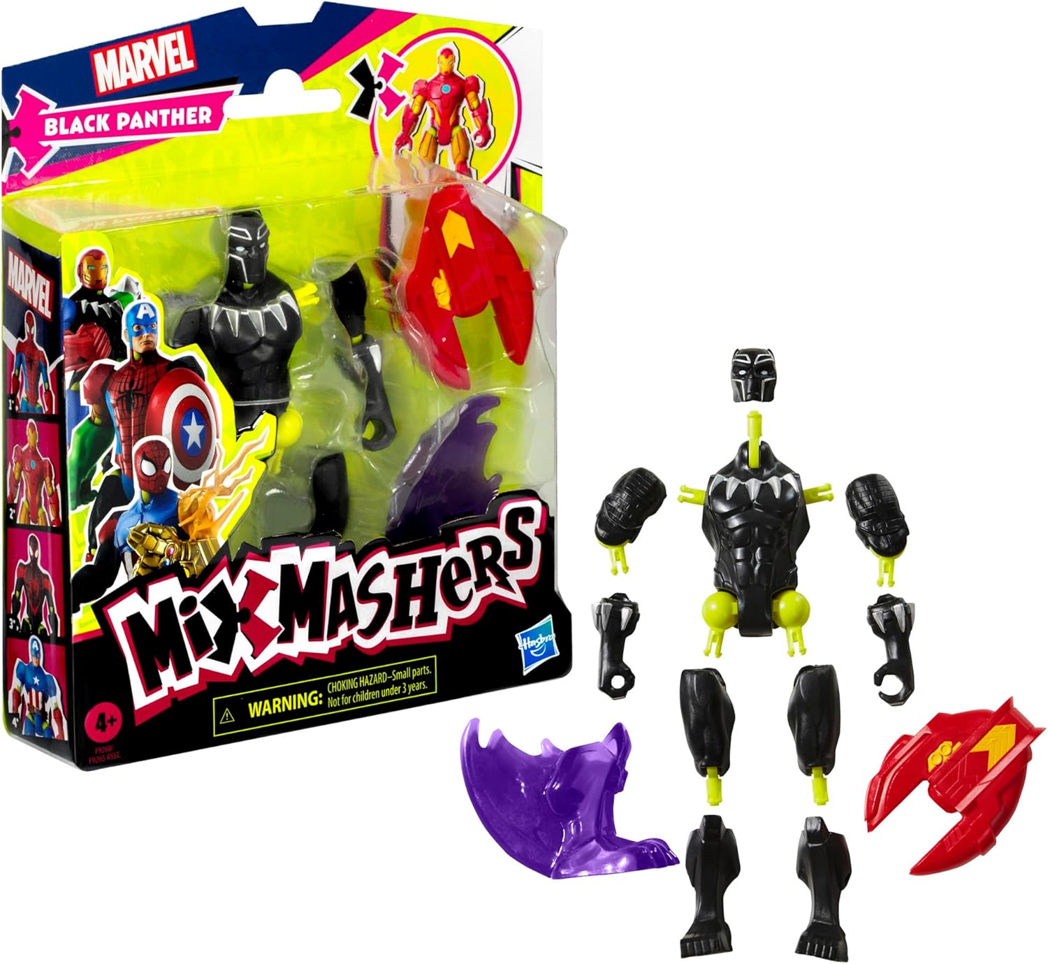 MixMashers Marvel oyuncakları, Iron Man, Hulk, Thanos, Spider-Man, Miles Morales, Venom, Iron Spider, Black Panther ve Captain America gibi en ikonik kahramanları ve kötü adamları içeriyor.