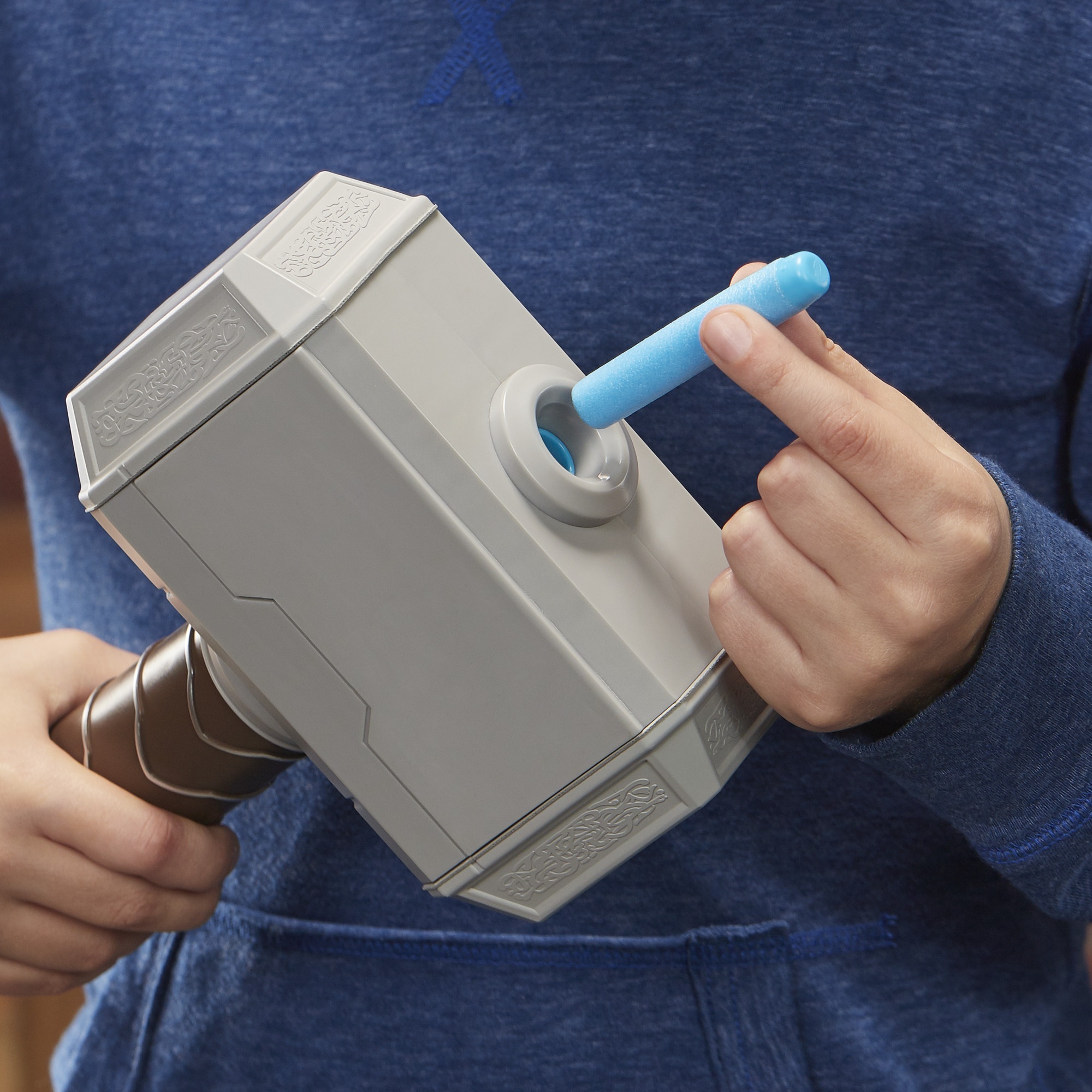 • ÇEKİÇ GÜCÜ SALDIRISI: Çocuklar, tıpkı Thor gibi Dünya'yı koruduklarını hayal edebilecek! Düğmeyi basılı tutun ve bir Çekiç Gücü hareketi yaparak NERF dartı atın.