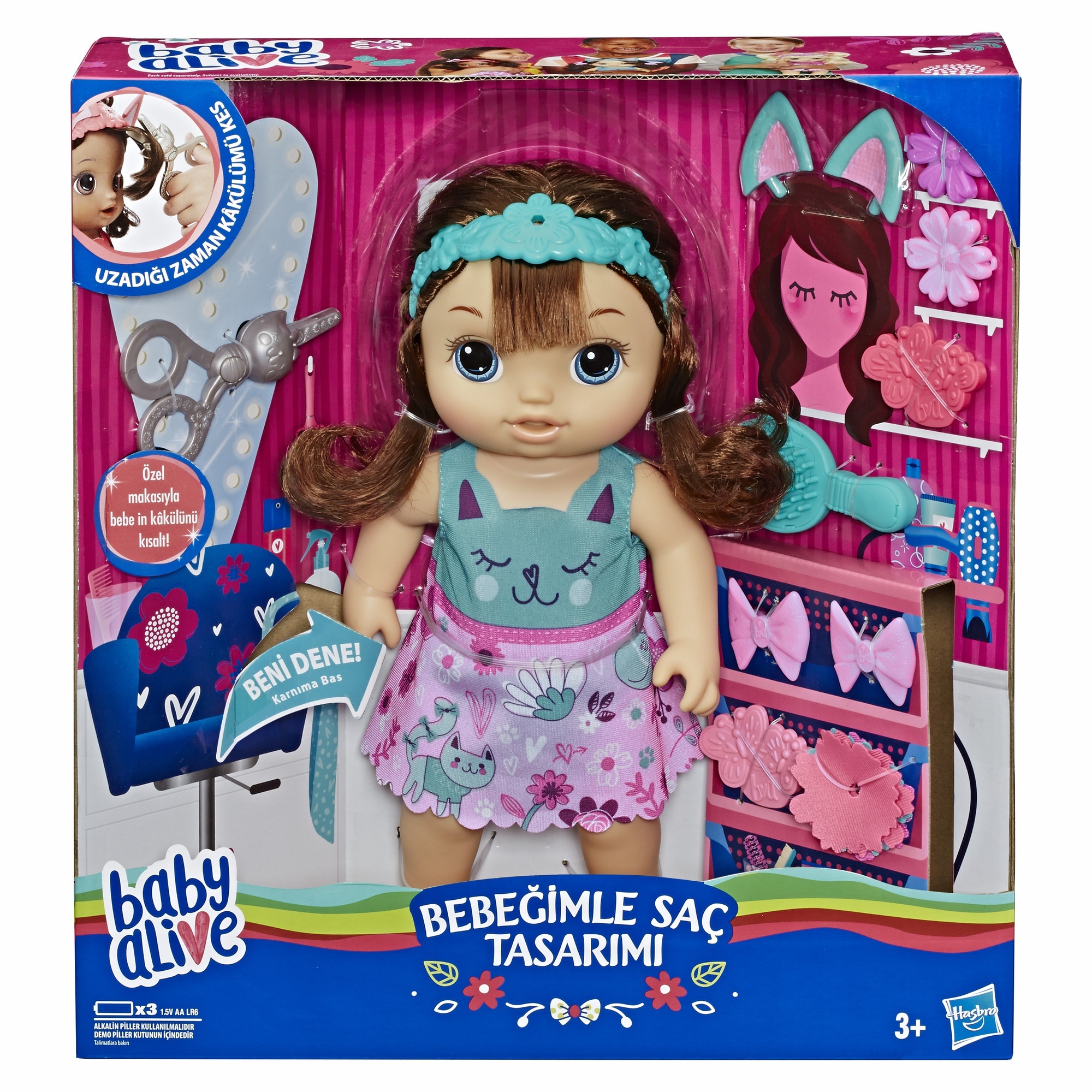 “Hadi saçıma yeni bir şekil verelim!” Baby Alive bebeğiniz; saçını taramanız, düzeltmeniz ve şekillendirmeniz için hazır!