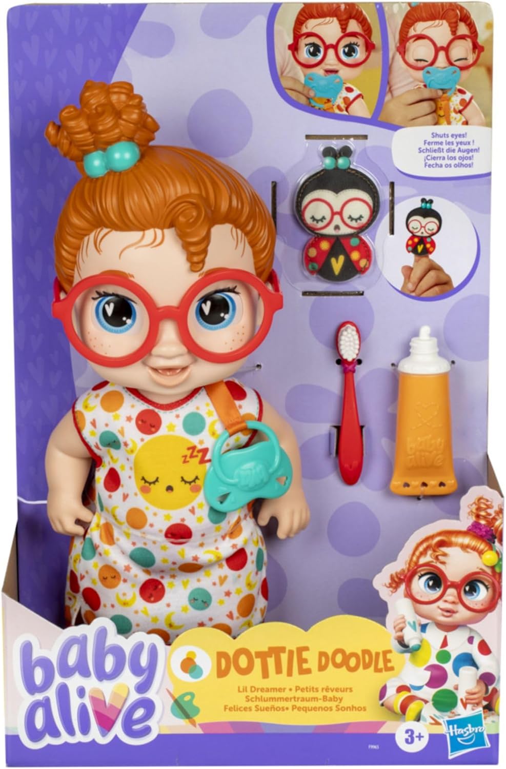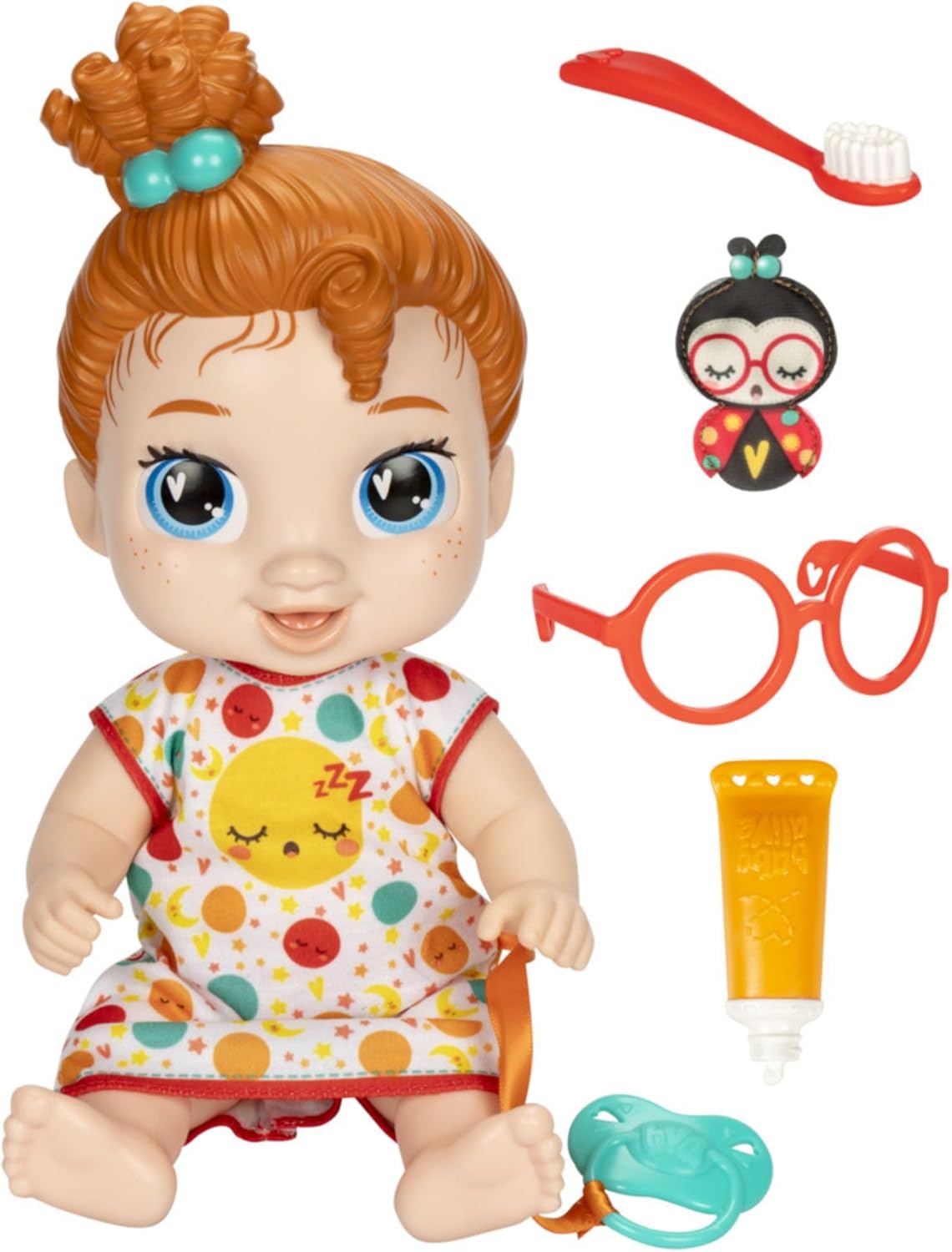 Oyuncak, her şeyi daha eğlenceli hale getirmek için diş fırçası ve emzik gibi aksesuarlarla birlikte gelir.
