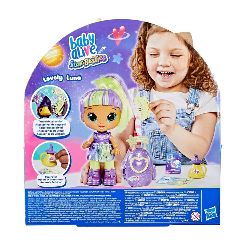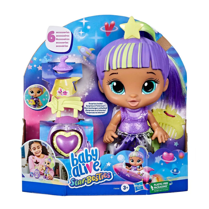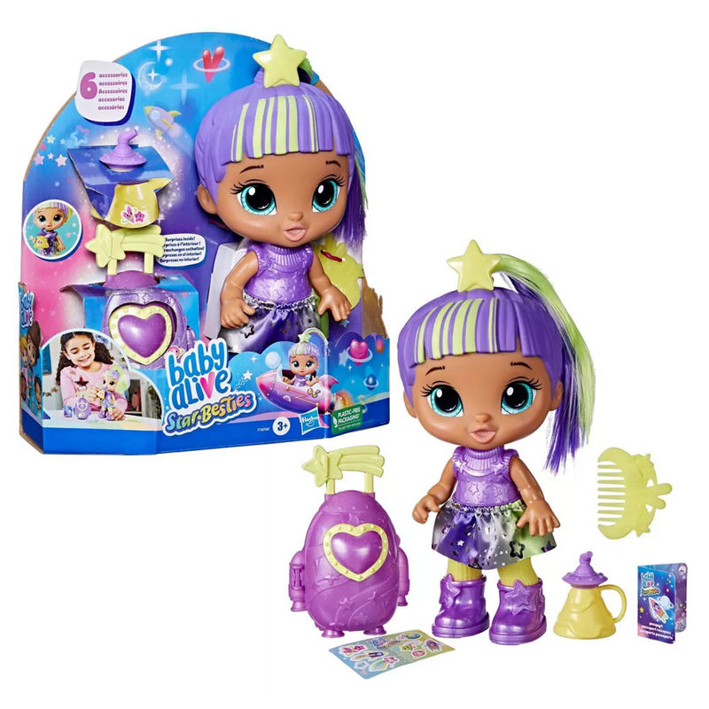 Baby Alive bebeklerini seven çocuklar Stellar Skylar, Lovely Luna ve Bright Bella dahil olmak üzere tüm Star Besties bebeklerini toplamak isteyecektir. (Her oyuncak bebek ayrı satılır. Stoklarla sınırlıdır.)