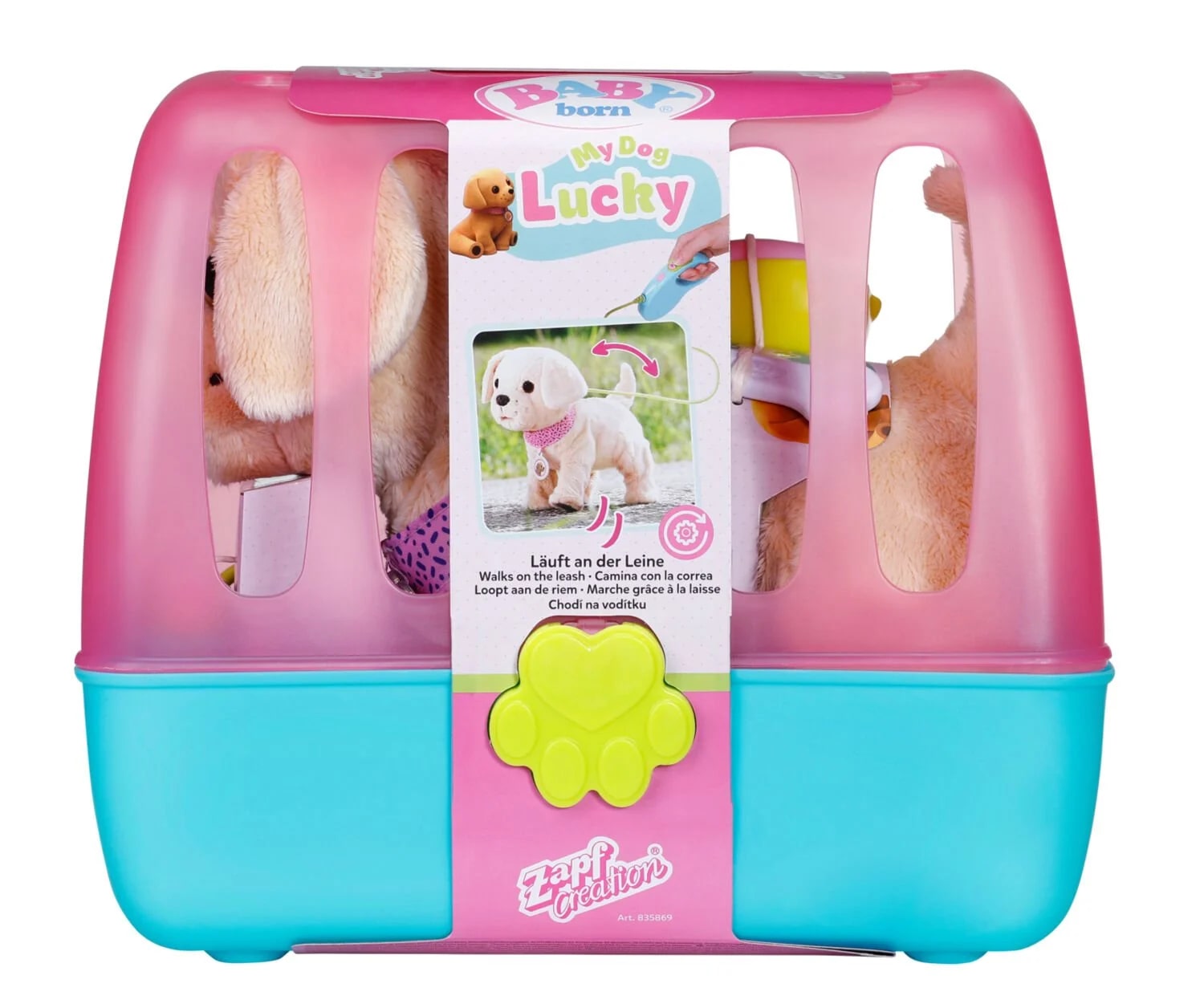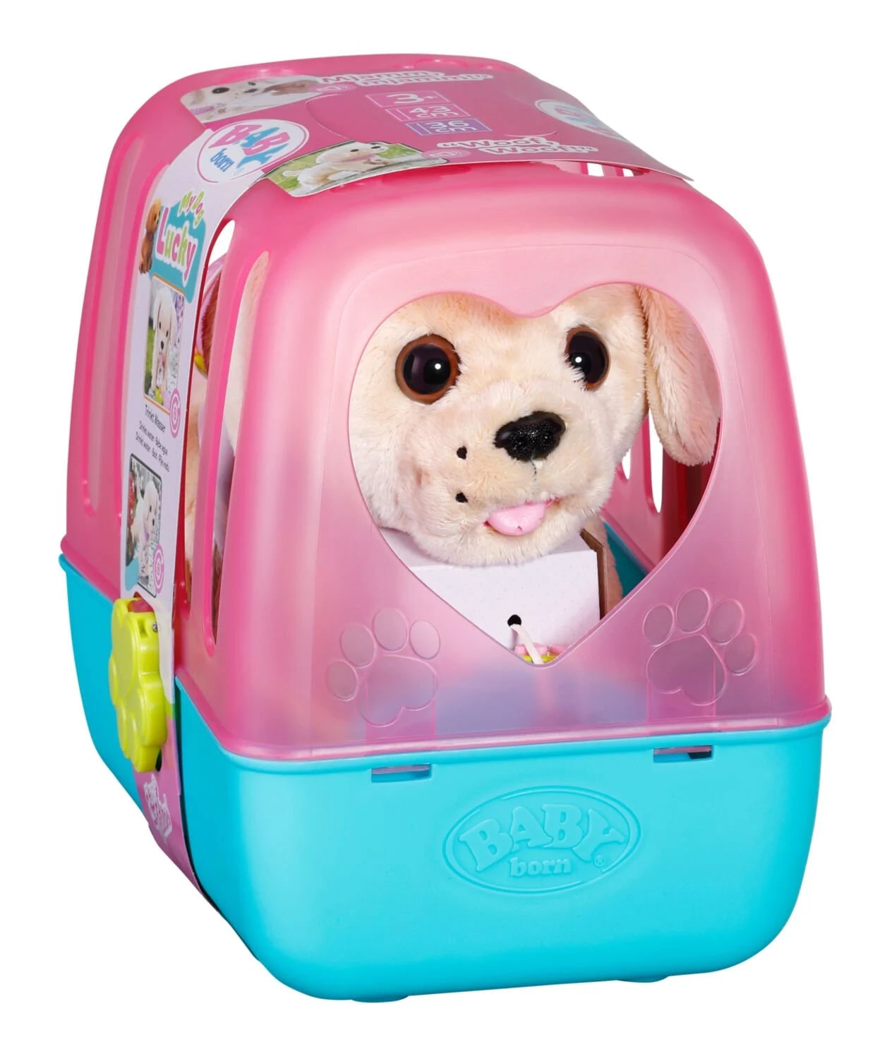 Baby Born çizgi filminden tanıdığımız Köpeğim Lucky, tasmayla yürüyebiliyor, kokluyor, kuyruğunu sallıyor, kabından gerçek su içiyor ve bacağını kaldırıp tuvaletini yapıyor!