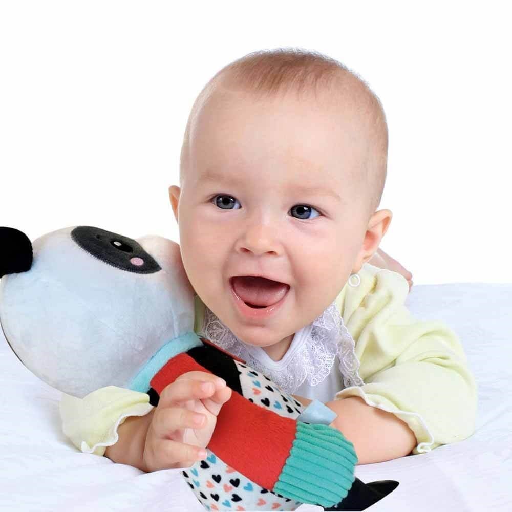 Yumuşak kumaşlardan üretilen bu sevimli panda oyuncak bebeğinizin içini rahatlatmanın yanı sıra görsel ve dokunsal duyularının gelişimini de teşvik edecek.