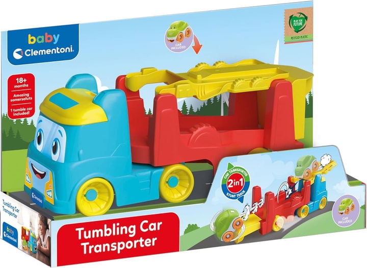 Araba taşıyıcı, pakete dahil olan yuvarlanan arabanın hızlanıp yuvarlanacağı bir ray haline gelir; araba devrilir ve son derece eğlenceli taklalar atarak çocuğun merakını uyandırır.
