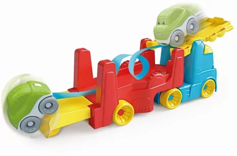 Bebek Clementoni'nin rengarenk kamyonu, Yuvarlanan Arabaları taşımak için bir araba taşıyıcıya dönüşüyor!