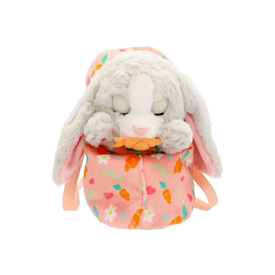 Emziği çıkarıldığında gözlerini açarak uyanıyor. Uyku zamanı geldiğinde, emziği takıldığında gözlerini kapatarak tatlı tavşan sesleri çıkarıyor. Battaniyesinden çıkarılarak sarılabilir ya da çantasına yerleştirilerek her yere taşınabilir. Yumuşacık tüylerine sarılmak çok güzel! Tek asortiden oluşuyor.