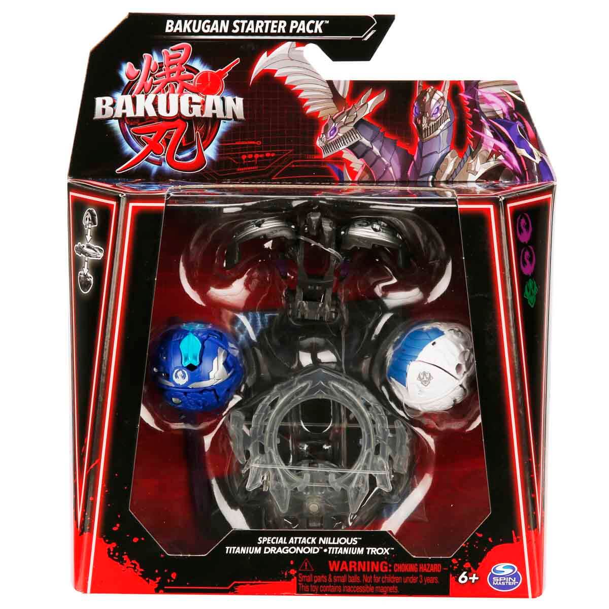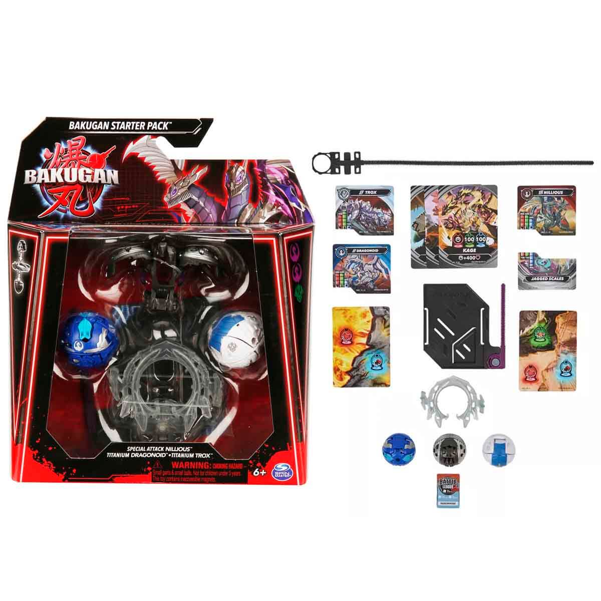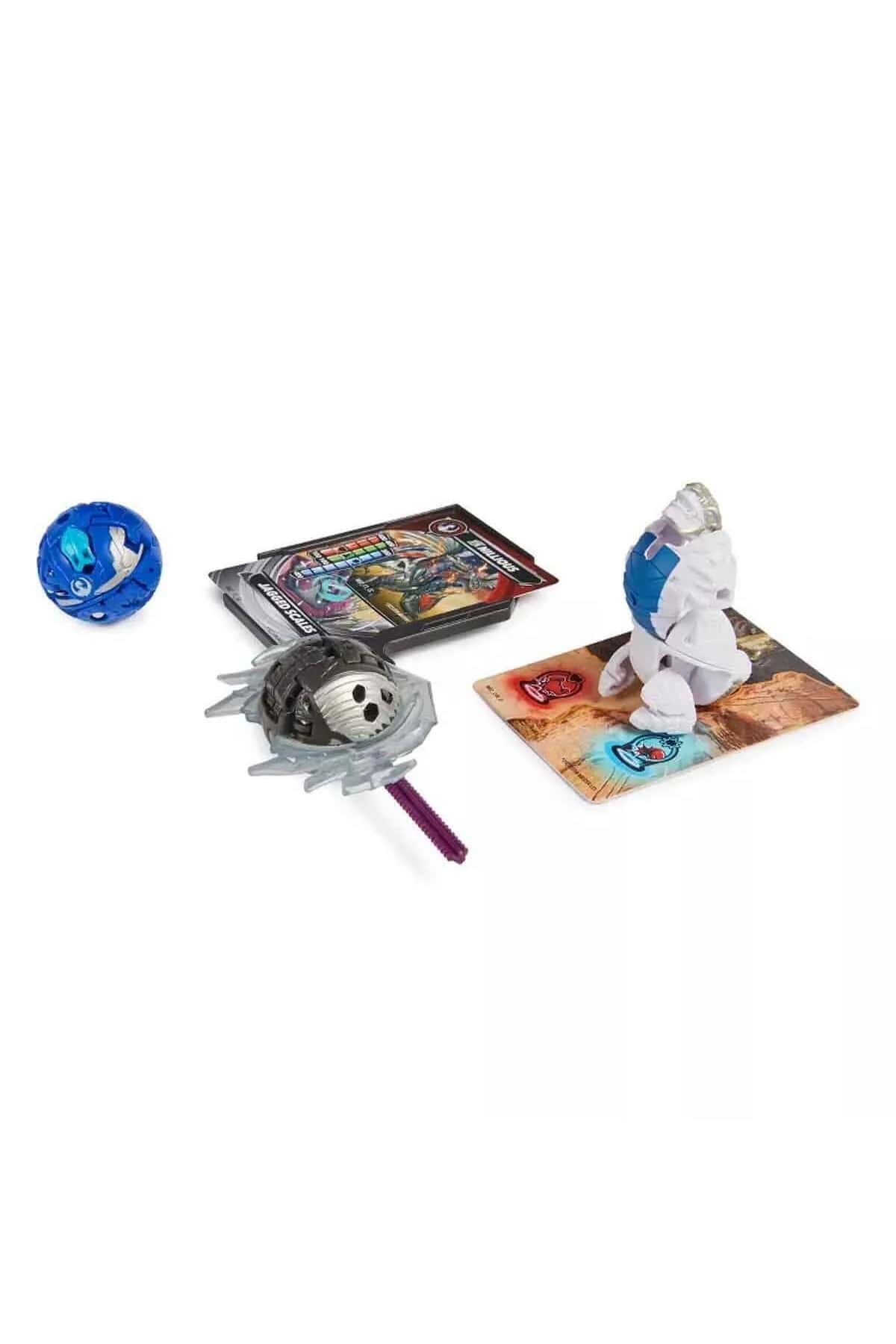 Kutu içerisinde; 3 adet Bakugan, fırlatma aparatı, koleksiyon kartları ve çeşitli aksesuarlar bulunmaktadır.