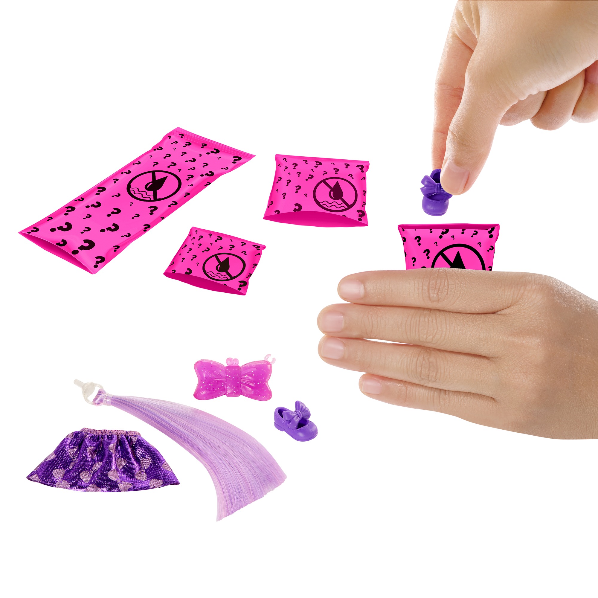 Gizemin tamamını çözmek için geri kalan sürpriz paketleri de açarak at kuyruğu saç eklentisini, parlak eteği ve uyumlu ayakkabılarla aksesuarları keşfedin!