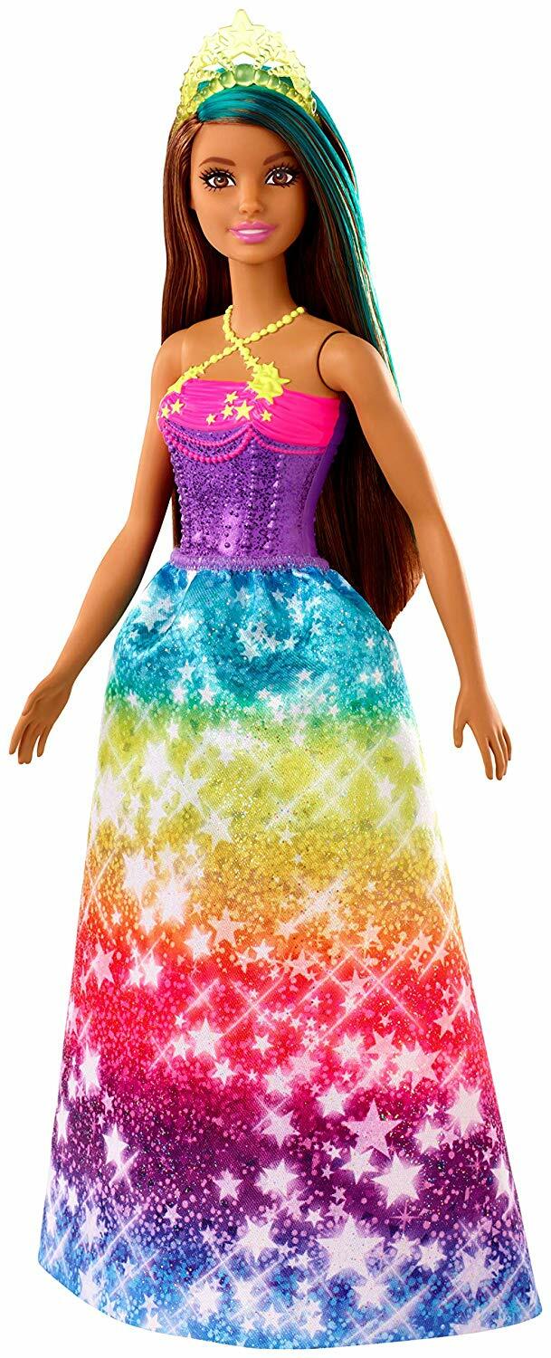 Her Barbie bebeğin saçlarındaki parlak renk şeridi eğlenceli bir sürpriz gibi, çıkarılabilir taç ise kraliyet ailesine özgü görünümü tamamlıyor.