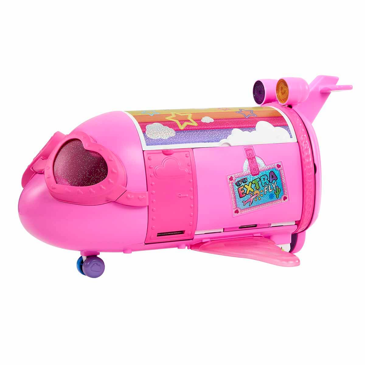 Işıltılı ve renkli jet, kalp şeklindeki gözlük kokpit pencereleri, katlanan bir hava merdiveni, bulut şeklindeki baş üstü kutuları ve dönüşen bir gökkuşağı pisti ile tatil hikaye anlatıcılığına ilham veriyor!