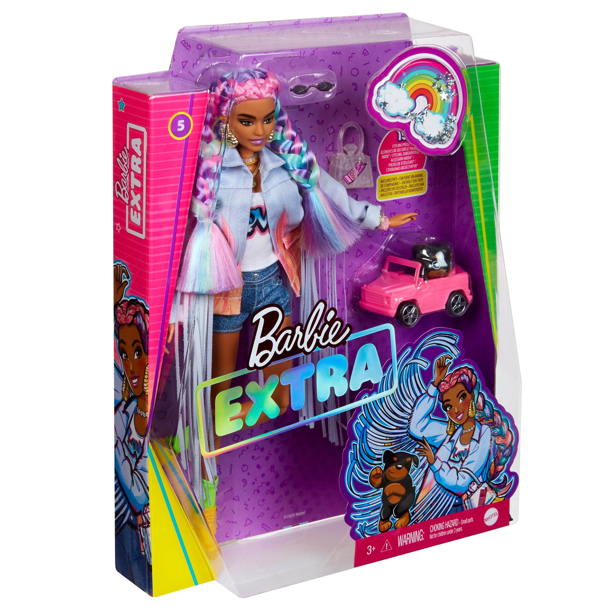 Rengarenk örgülü saçları, çılgın stili ve sevimli evcil hayvanı ile Barbie Extra yepyeni hikayeler oluşturman için seni bekliyor!