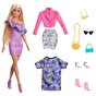 Bu Barbie bebek ve kıyafetleriyle 3 farklı görünüm yaratın! Set, birçok farklı giyim seçeneği sunan renkli kıyafetler ve moda aksesuarlar içeriyor.