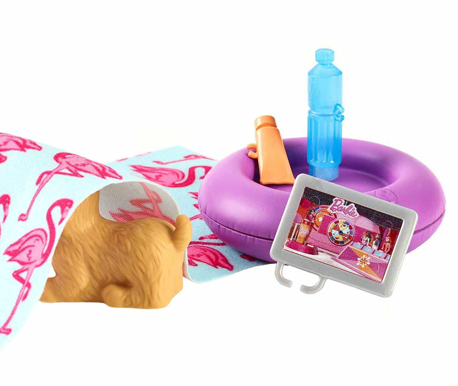 Barbie (Ayrı olarak satılır) için donut şeklindeki yüzme simidi seti göz alıcıdır.