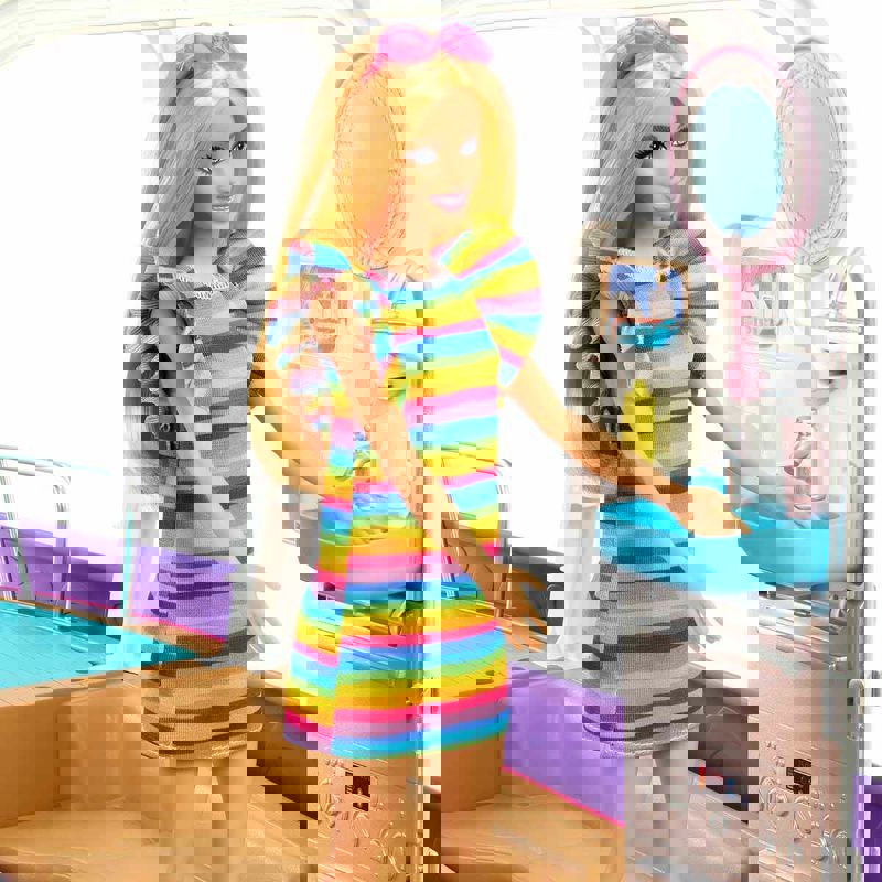 Barbie'nin Rüya Botu ile dalgalara karşı bir yolculuğa çıkın. Bu oyun setinde havuz, kaydırak, iki farklı dönüşüm ve daha birçok özel ayrıntı yer alır.