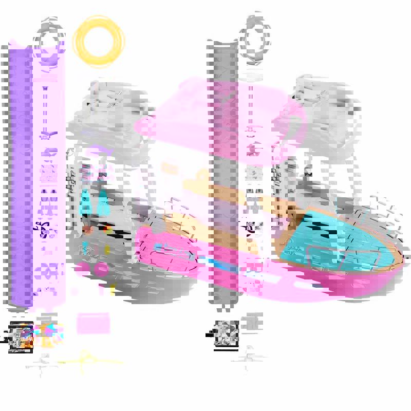 20'den fazla parçası ve havuz ile kaydırak gibi altı farklı oyun alanı bulunan Barbie'nin Rüya Botu oyun setiyle okyanusta eğlence sizi bekliyor.