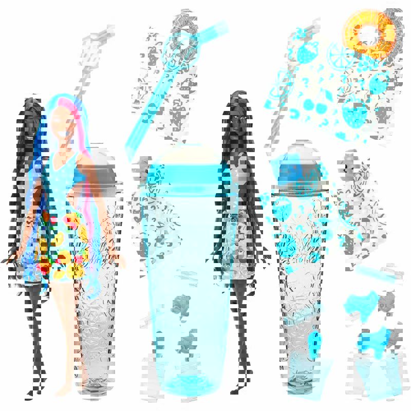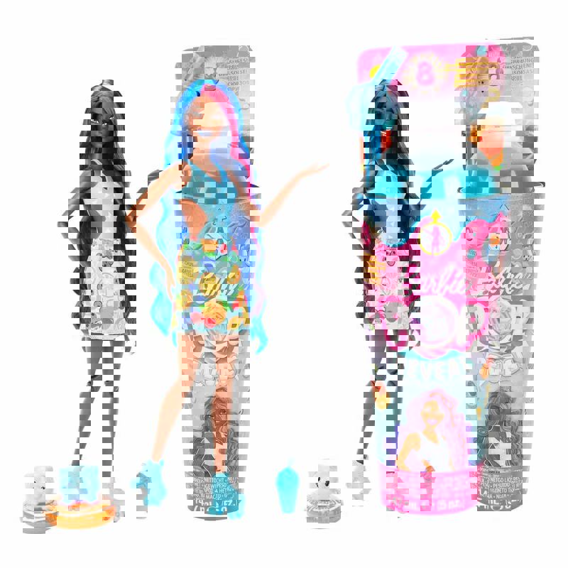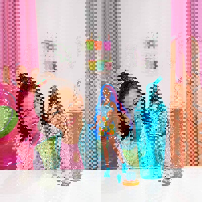 İçecek kutusunu paketinden çıkardıktan sonra açabilirsiniz. İçecek kutusunun içindeki birden fazla sürpriz paketi çıkartıp eğlenceli aksesuarlarınızla oynamaya başlayabilirsiniz. Barbie bebeğinizin kullanacağı aksesuarların yanı sıra sizin oynamanız için bir slime mevcut. Slime, Barbie bebekler ile olan eğlencenizi katlayacaktır.