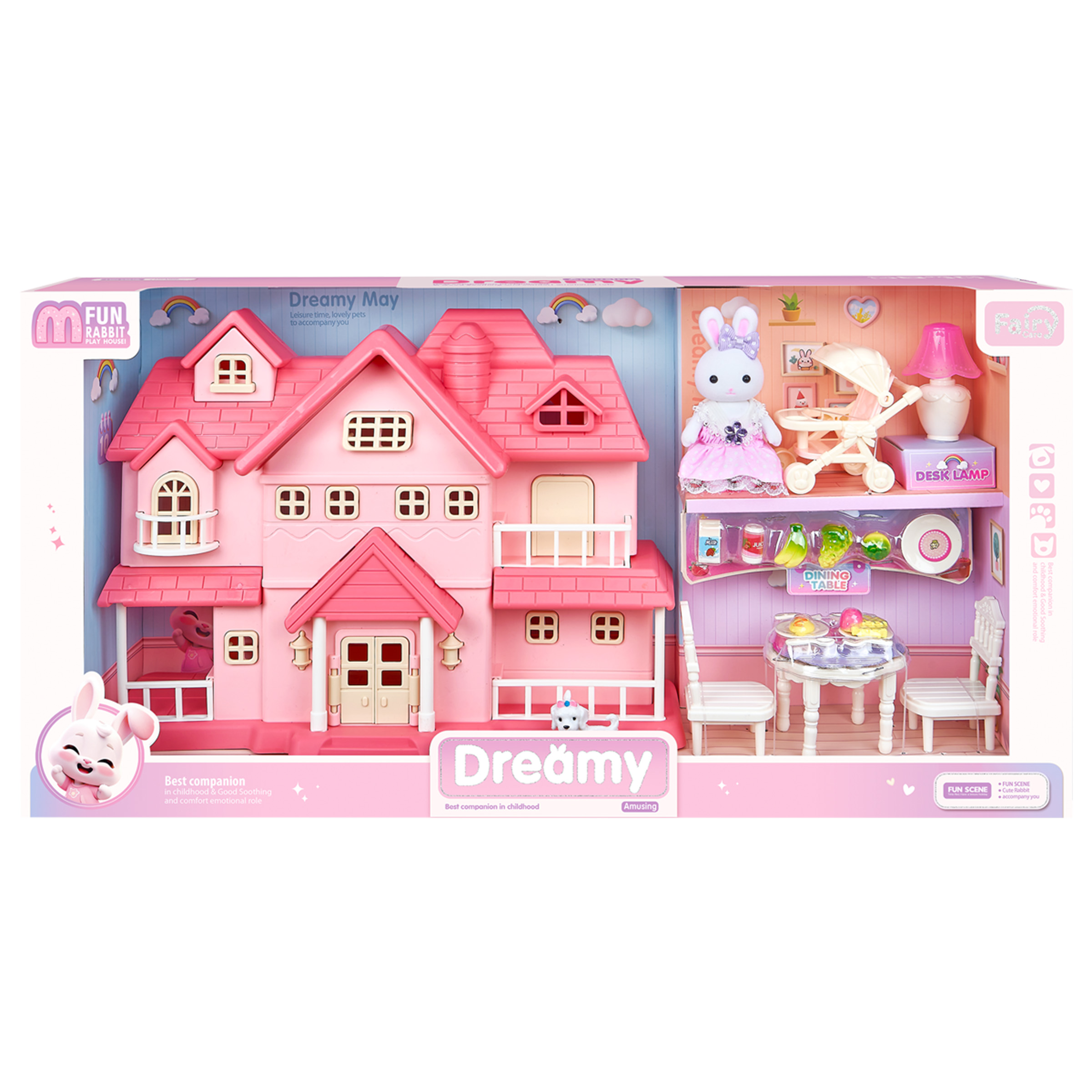 Bay Dreamy Mini Tavşan Büyük Villa Oyun Seti, çocukların hayal gücünü canlandıran, minyatür bir eğlence dünyası sunan harika bir evcilik oyun setidir.