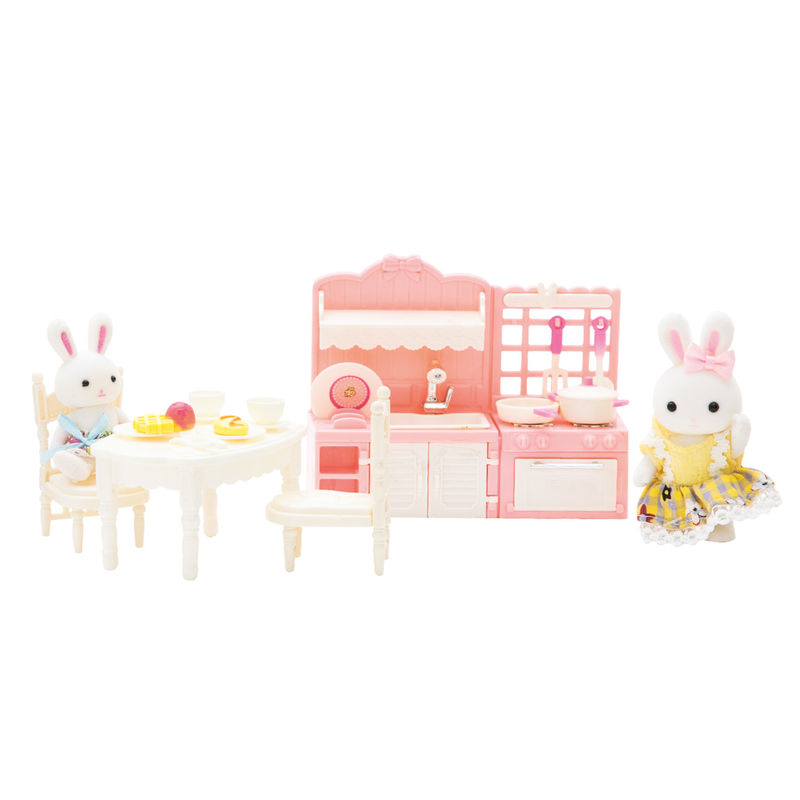sandalye seti, mutfak tezgahı ve aparatları şeklinde birçok aksesuarı ile