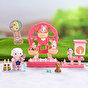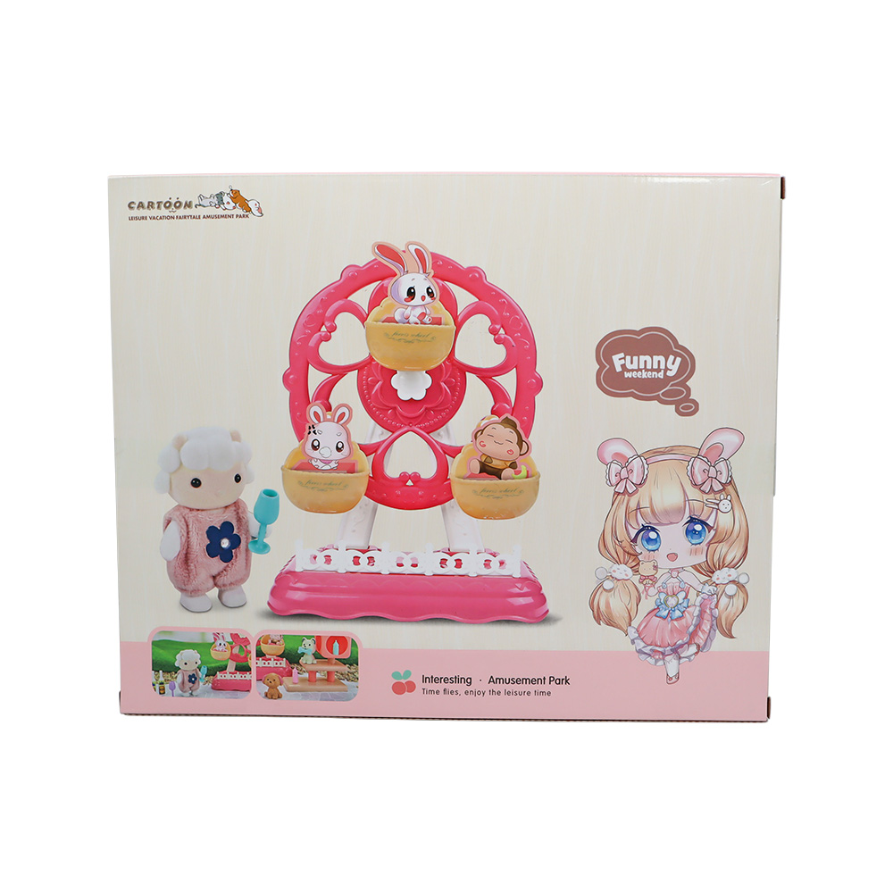Oyun seti şunları içerir: bir tavşan, bir kedi, şemsiyeli bir atlı karınca, salıncak, aksesuarlar.
