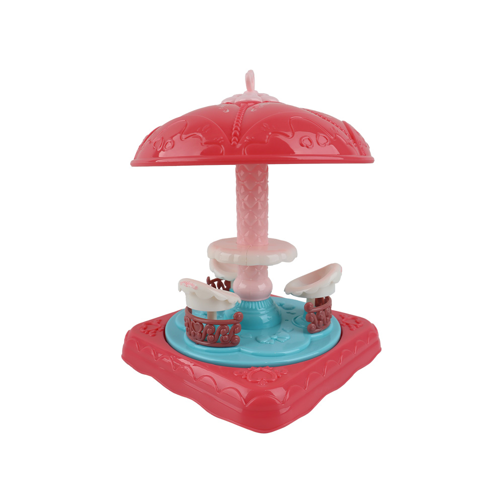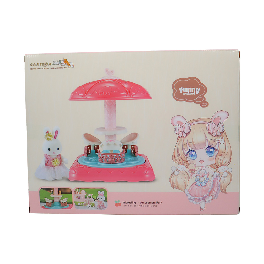 Oyun seti şunları içerir: bir tavşan, bir köpek, şemsiyeli bir masa, 2 sandalye, aksesuarlar ve gerçekmiş gibi döndürülebilen bir atlıkarınca