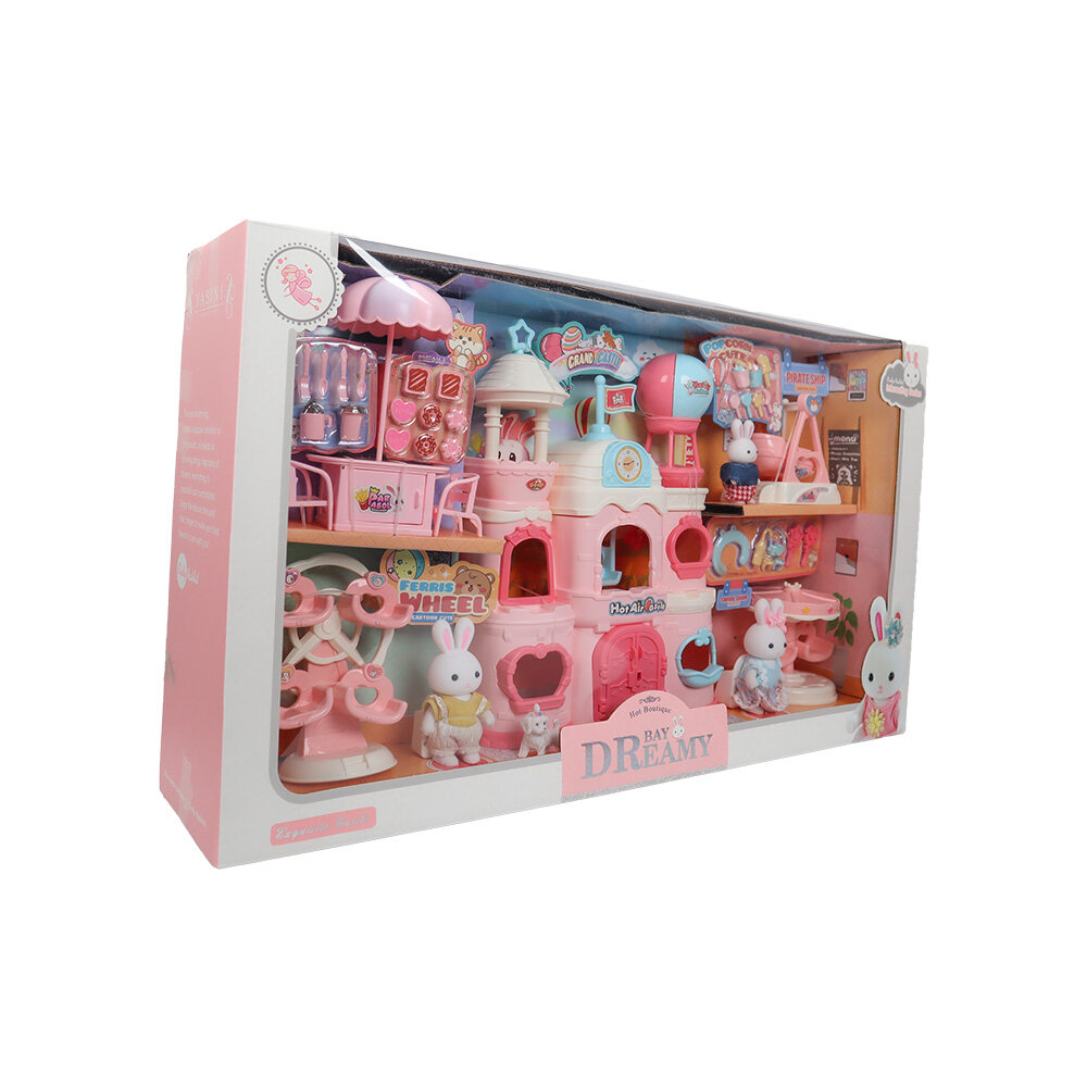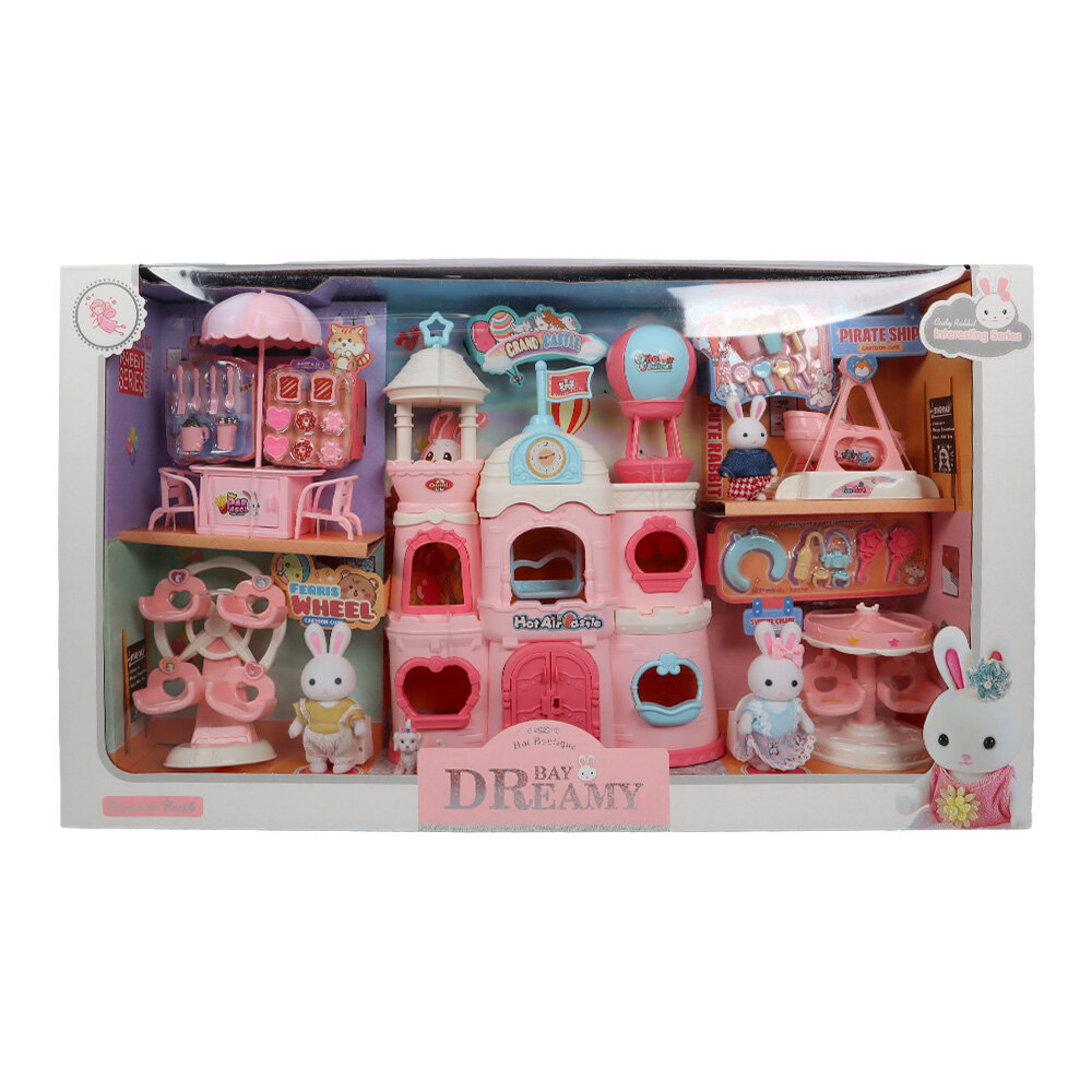 Bu minyatür tavşanların tasarımında; pembe bir kalesi, salıncak, dönme dolap tabureleri ve daha birçok aksesuarı bulunmaktadır.