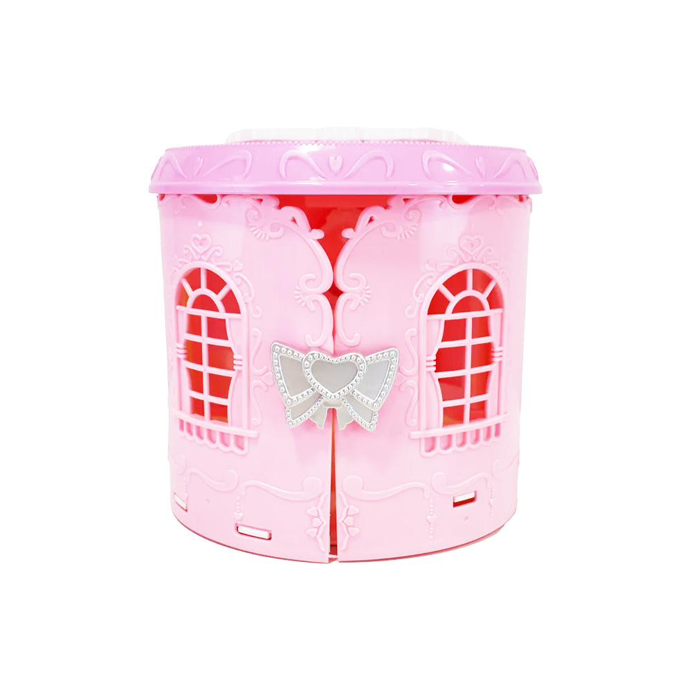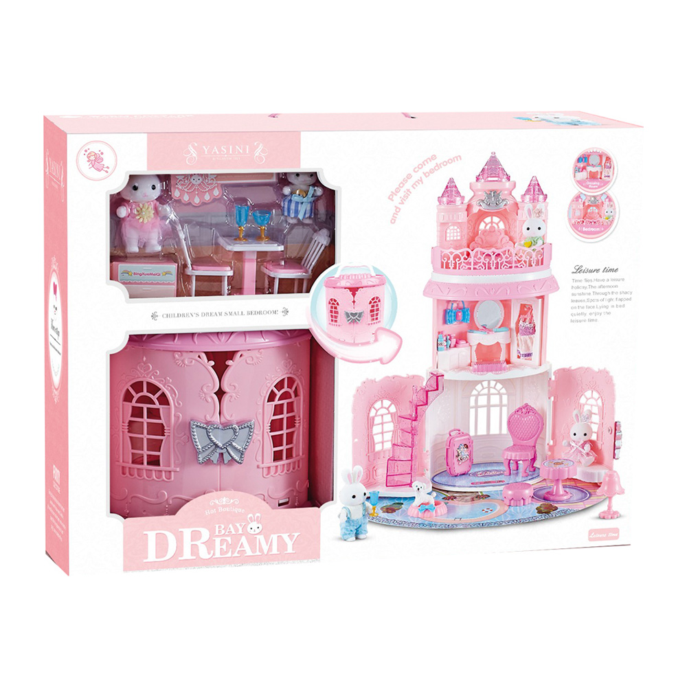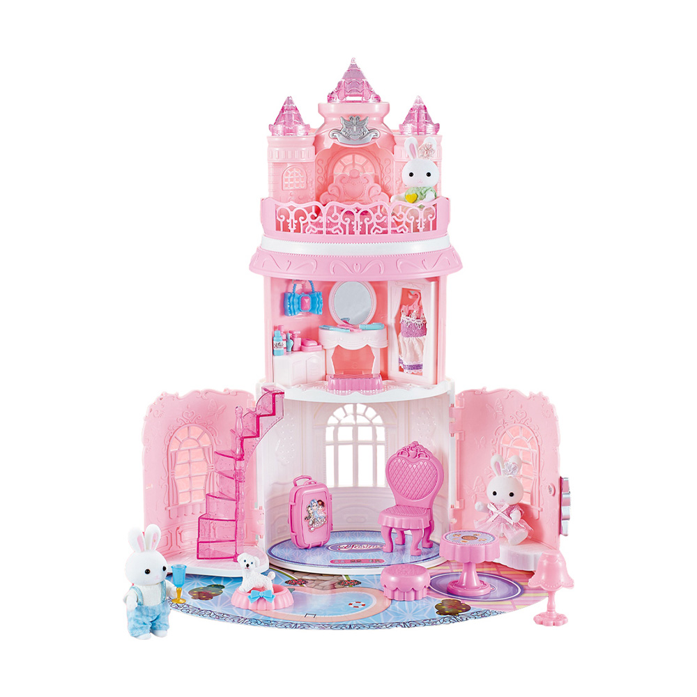 Size tüm aksesuarlarıyla birlikte oynamak ve eşlik etmek için mükemmel olan büyüleyici 2 katlı tavşan şatosunu sunuyoruz. Bu kale katlanabilir olduğundan sapı sayesinde istediğiniz yere götürebilirsiniz.