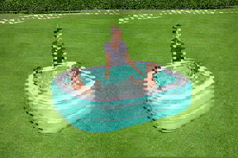 Aynı boyuttaki üç hava halkasından oluşan ekstra geniş yan duvarlar ile bu aile havuzu ek stabiliteye sahiptir.