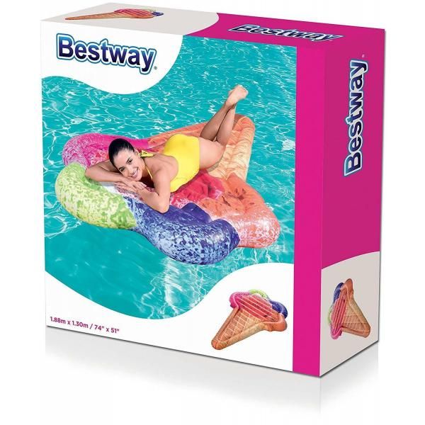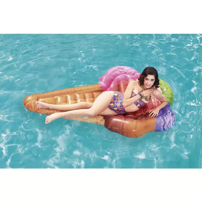 Denizde veya havuzda şık görüntüsü ve rahatça yatıp güneşlenebileceğiniz deniz yatağı ile yaz tatillerini eğlenceli geçire Yaz sıcaklarında serin suların tadını çıkarırken, göz alıcı bir stil sunan Bestway Dondurma Külahı Desenli Deniz Yatağı ile tanışın!