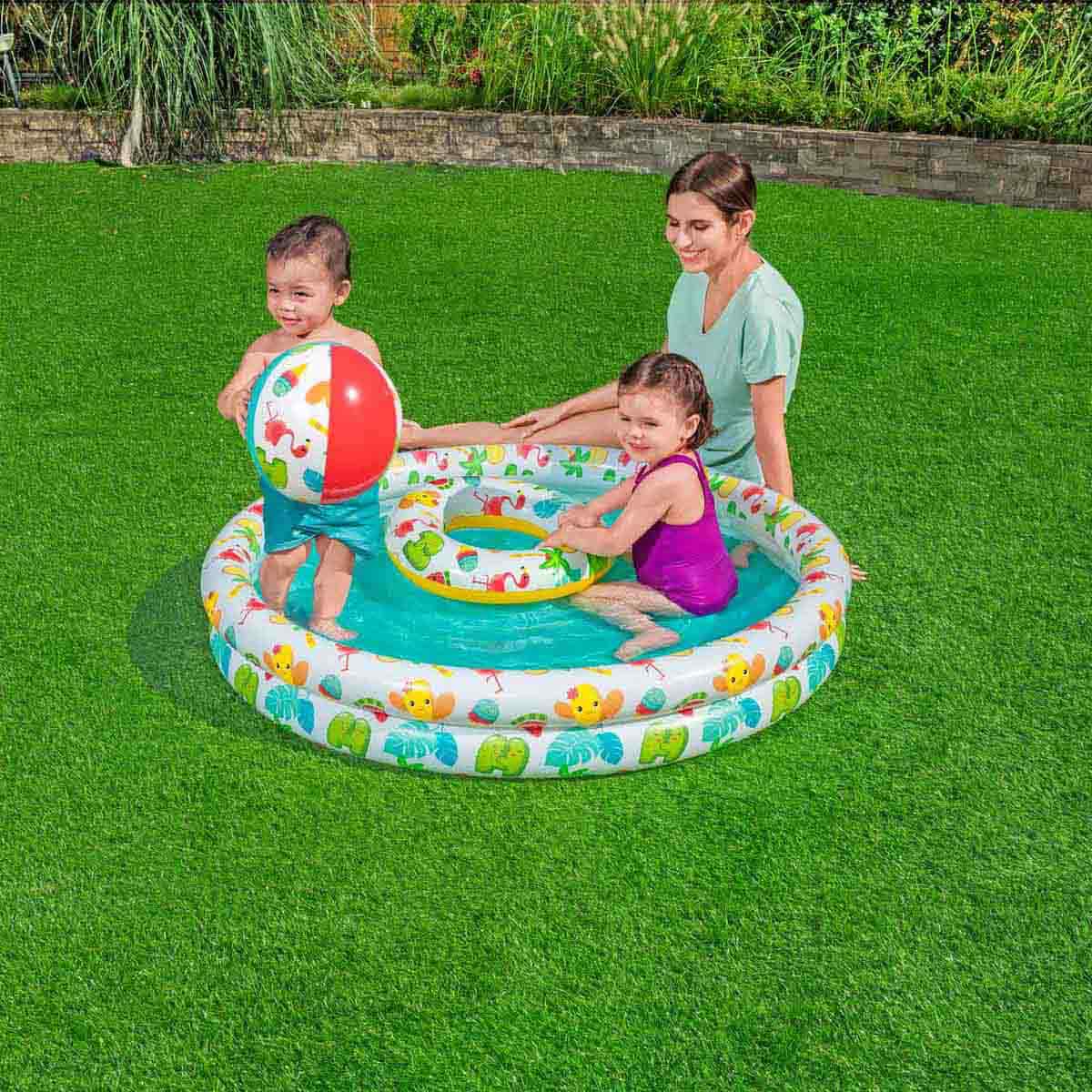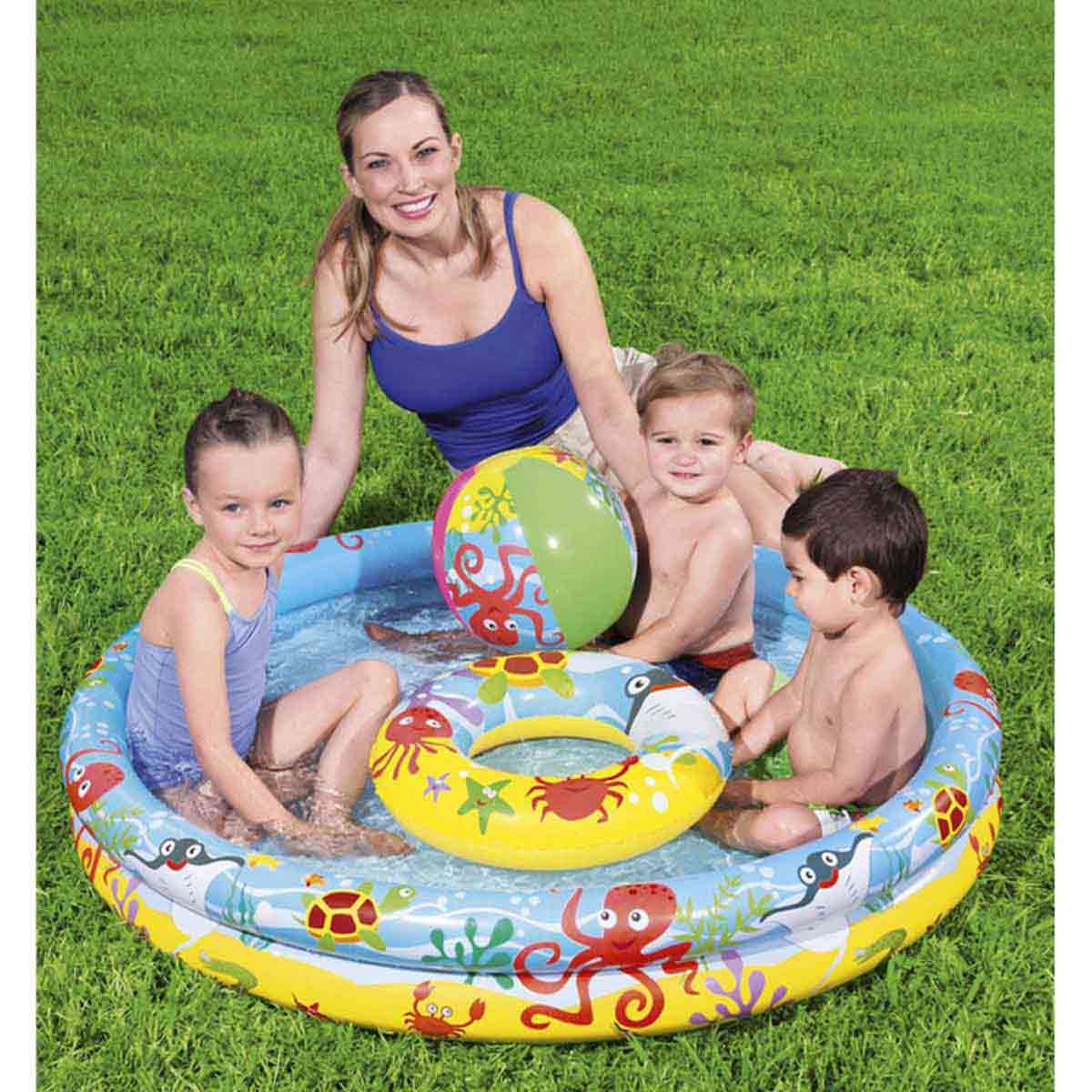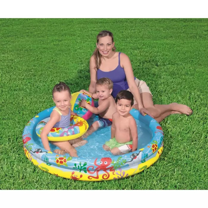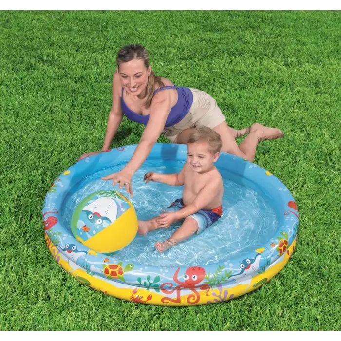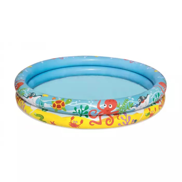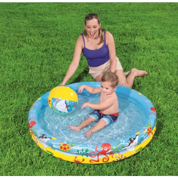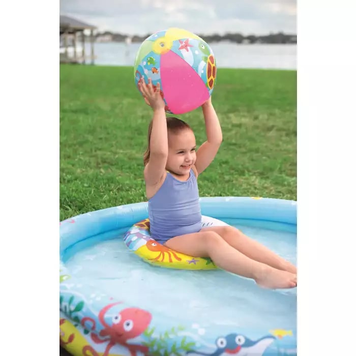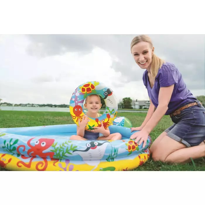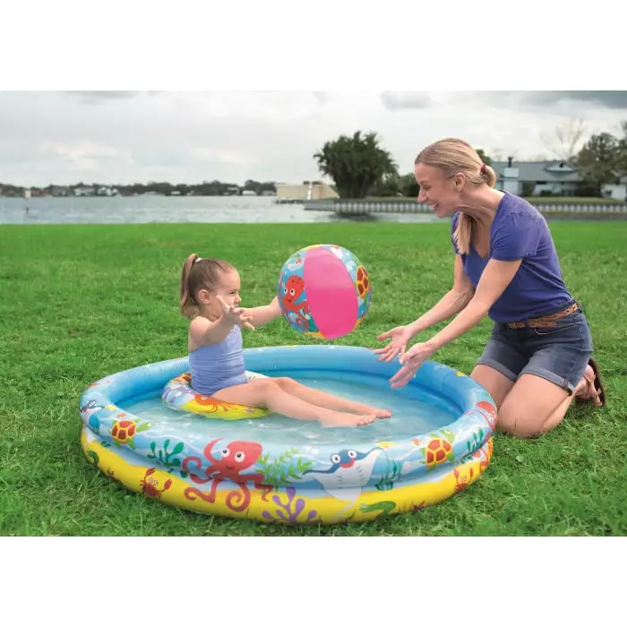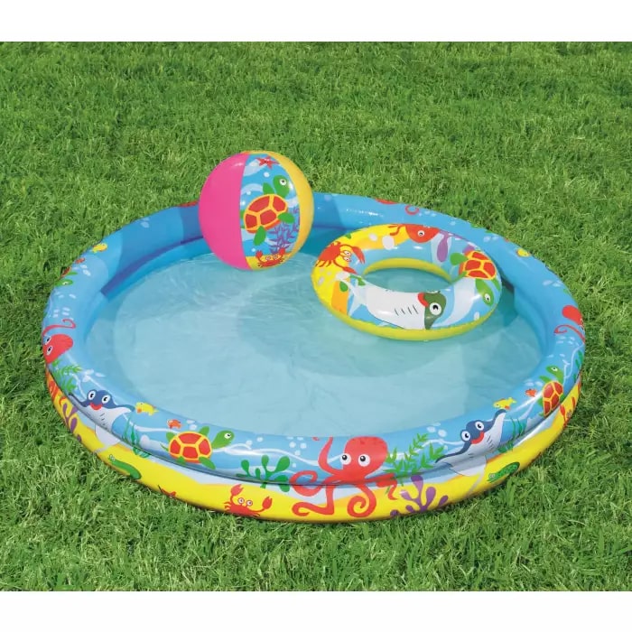 2 halkalı, deniz canlıları desenli, yırtılma ve patlamaya karşı dayanıklı özelliklere sahip bu şişme havuz ile yüzmek çok daha eğlenceli! Üstelik set içerisine şişme can siö-midi ve plaj topu da dahil.