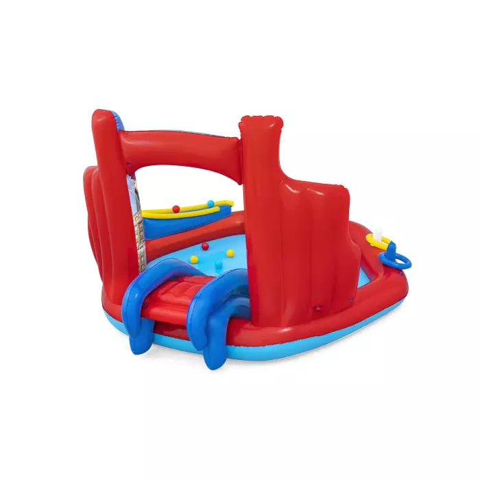 Şişirilebilir kaydırak, top oluğu, daire şeklinde atış ve su çeşmesi gibi şişirilebilir atraksiyonların bulunduğu havuz, yürümeye başlayan çocuğunuzu kesinlikle memnun edecek ve onun en sevdiği oyun yeri haline gelecektir.