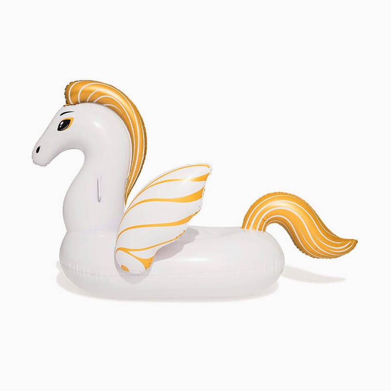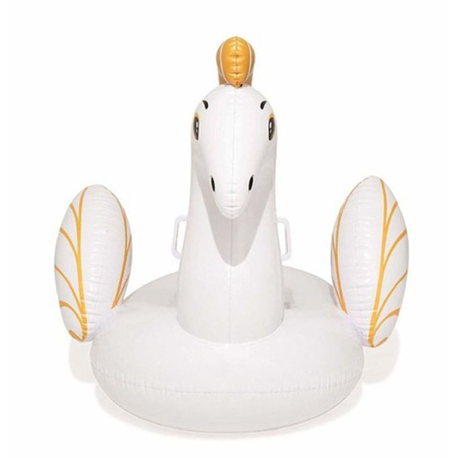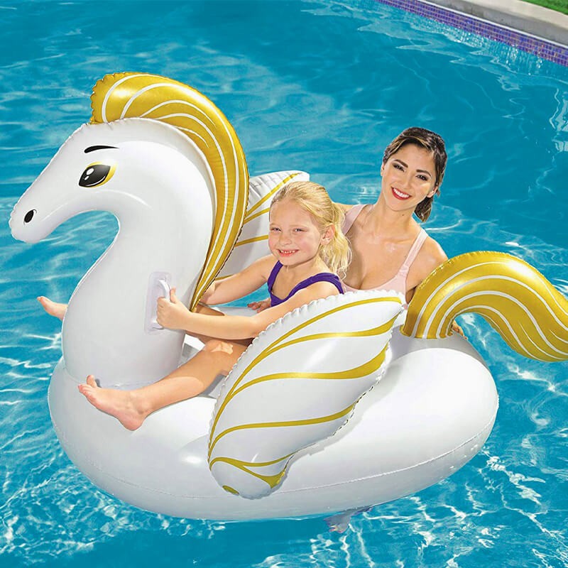 Denizde veya havuzda çocuklar beyaz renkli şişme pegasus ile eğlenceli dakikalar geçirecekler.