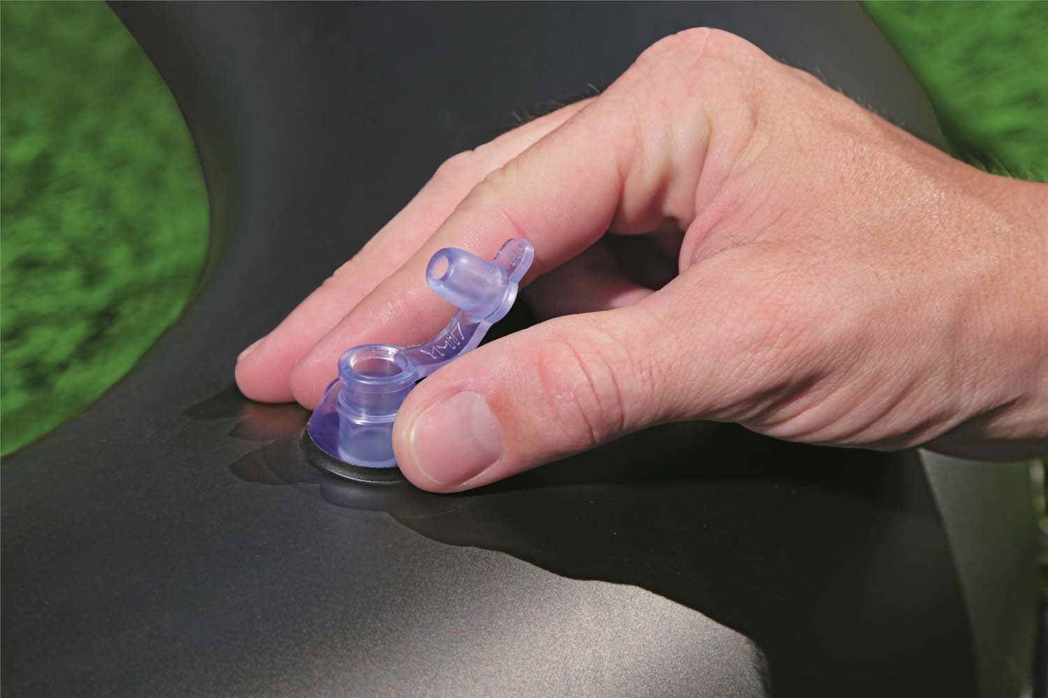 Büyük, çıkıntılı şişirilebilir gözler tutamak görevi de görüyor.