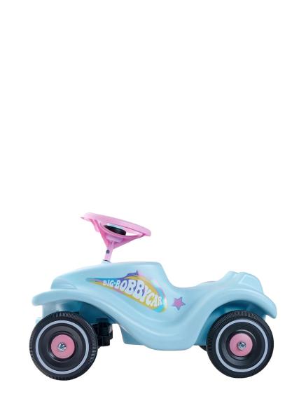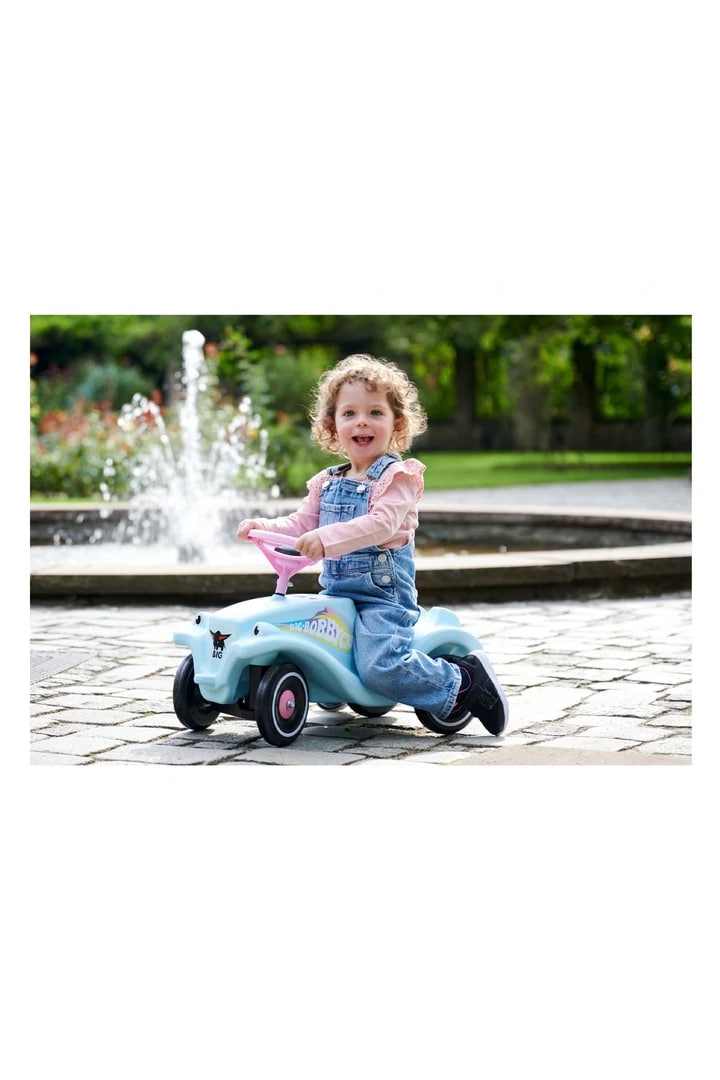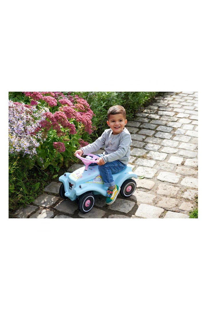 Özel ve göz alıcı, direksiyon simidi ve orijinal çiçekli çıkartmaları ile zarif pembe rengindeki Bobby Car oyun vakitlerini dışarıya taşıyor.