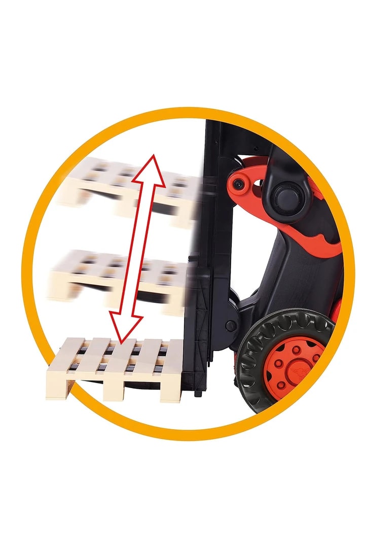 Bu sağlam çocuk forklift, çok sayıda oyun süresi olanağı sunar. Palet çatalı ileri ve geri, ayrıca yukarı ve aşağı hareket ettirilebilir.