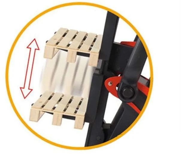 Direk öne ve arkaya katlanabilir ve yukarı ve aşağı hareket ettirilebilir. Birlikte verilen palet, küçük yüklerin hızlı bir şekilde istenen konuma taşınmasına olanak tanır.