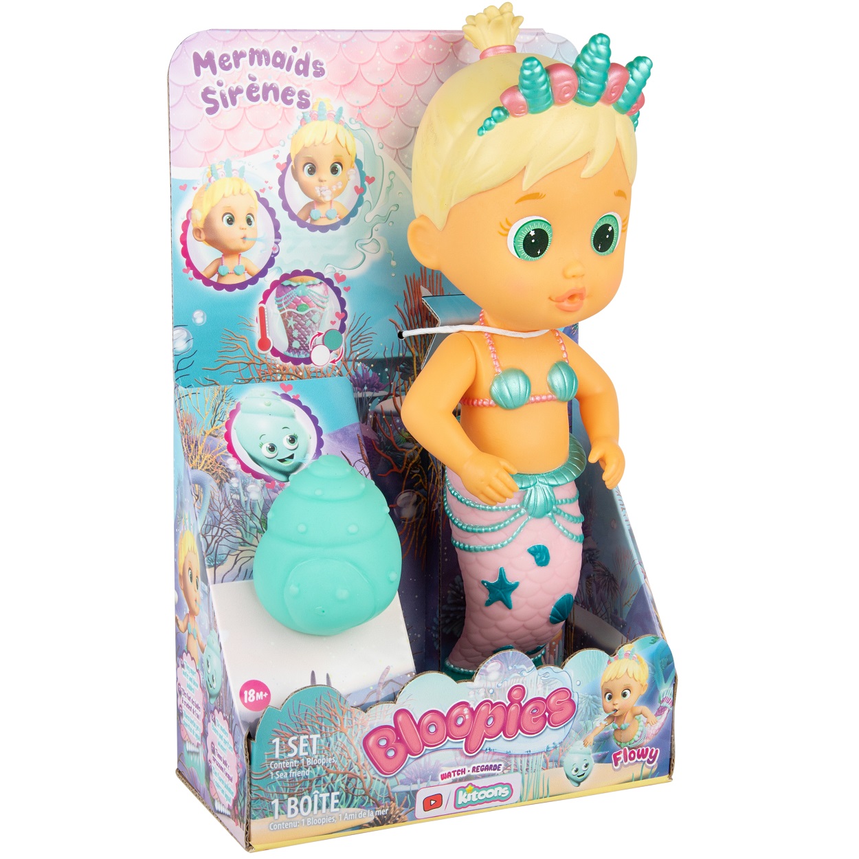 Her bir karekterin kendine üzgün mistik dövmeleri olan Bloopies Deniz Kızları ağızlarından kabarcıklı su balonları çıkartabiliyorlar!